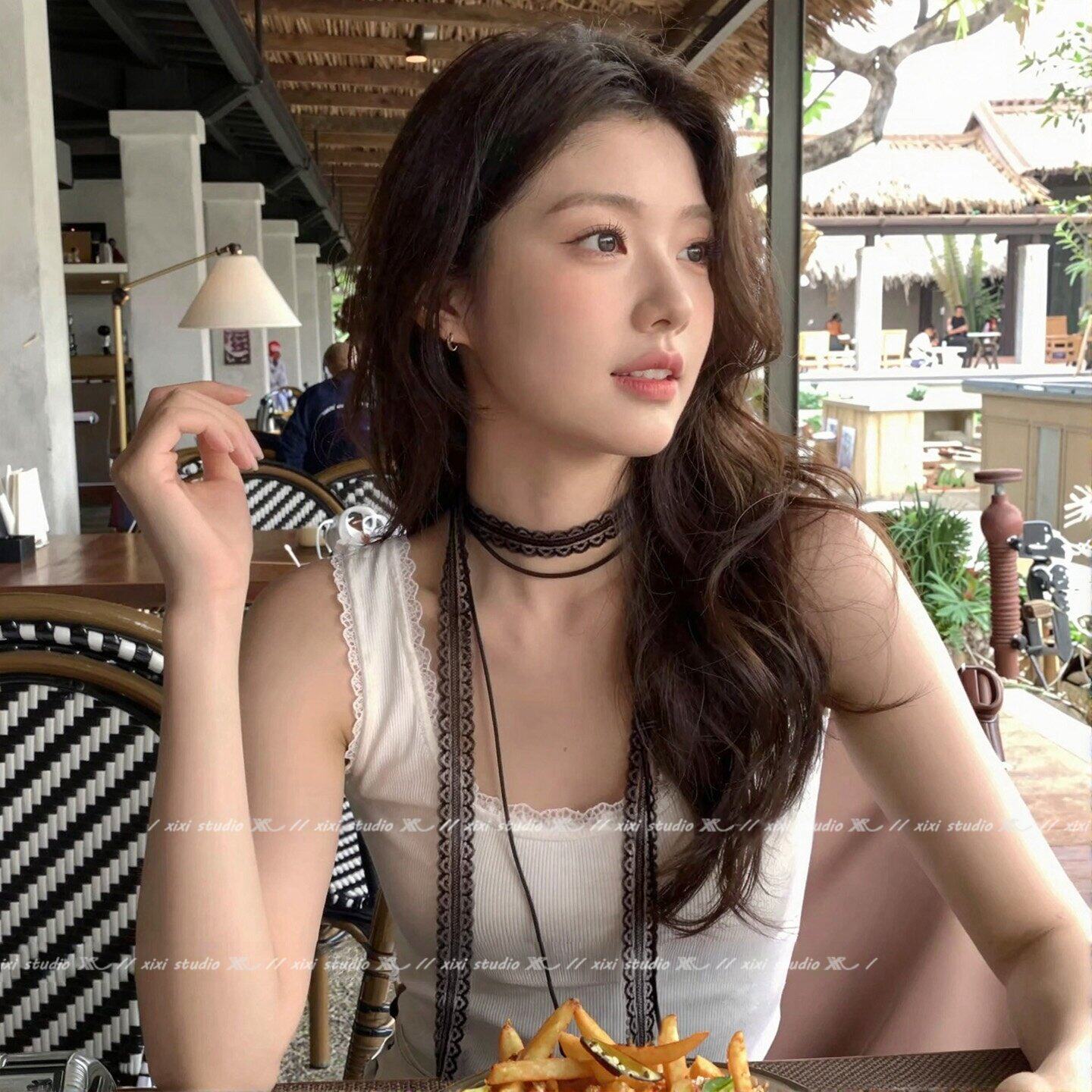 纯欲风白色蕾丝丝巾系脖双层颈带项链女款超仙叠戴设计感颈链新品