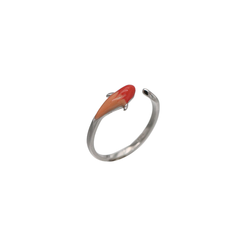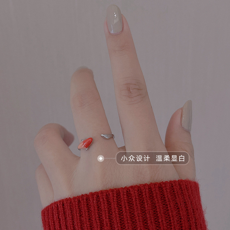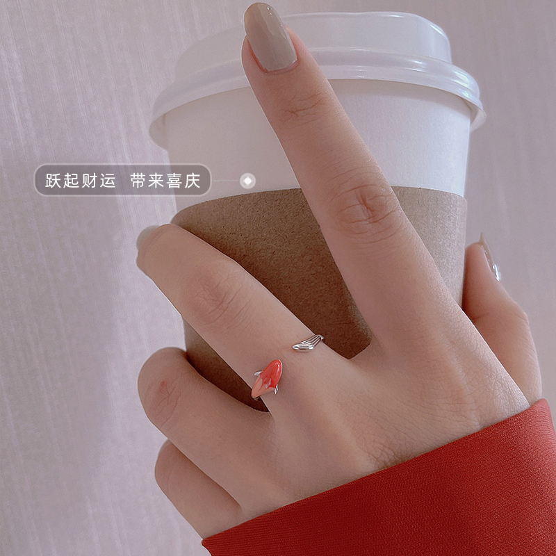 小Z优品中国风锦鲤戒指女925银幸运小众设计珐琅红色小鱼开口指环