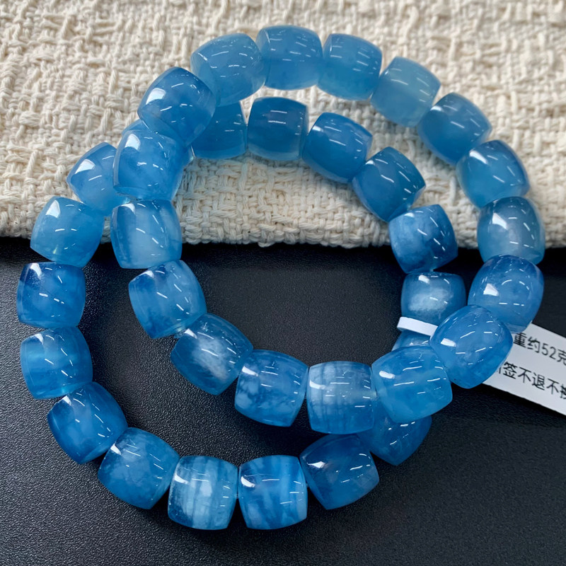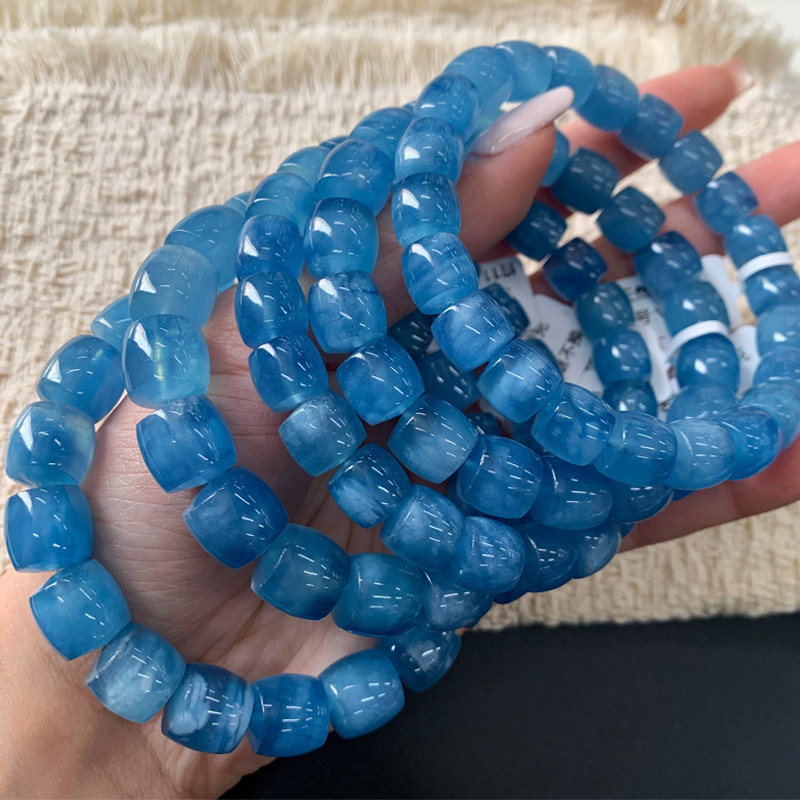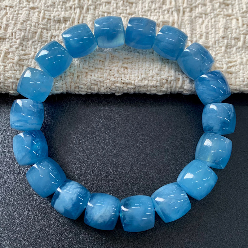 天然莹润海蓝宝桶珠手链巴西润蓝色蓝天白云水晶送礼物饰品情侣款