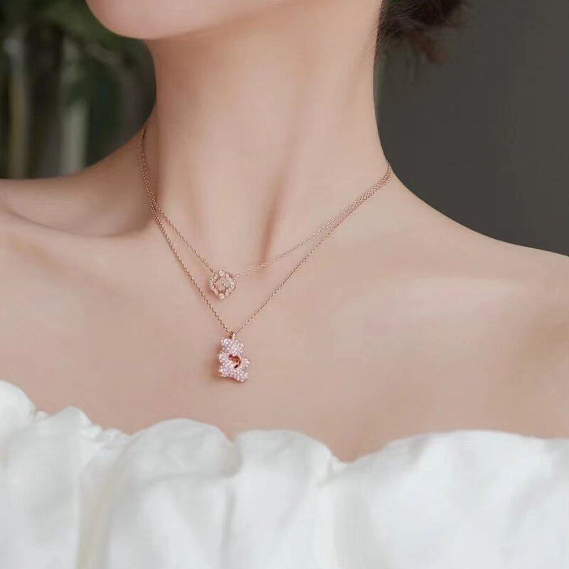 Swarovski/施华洛世奇正品粉色泰迪小熊女士项链吊坠5642976
