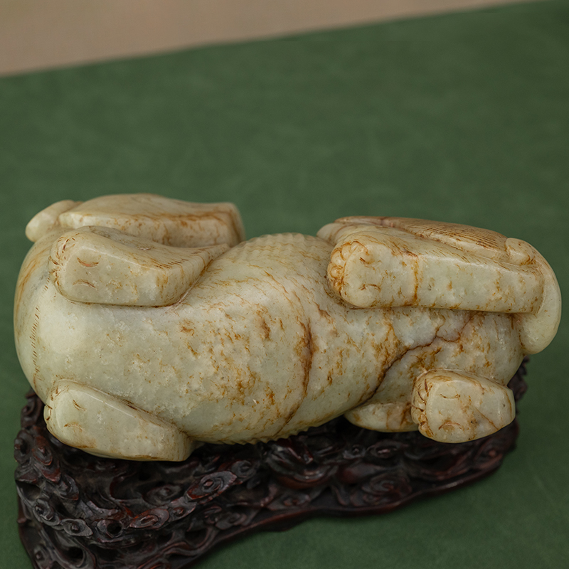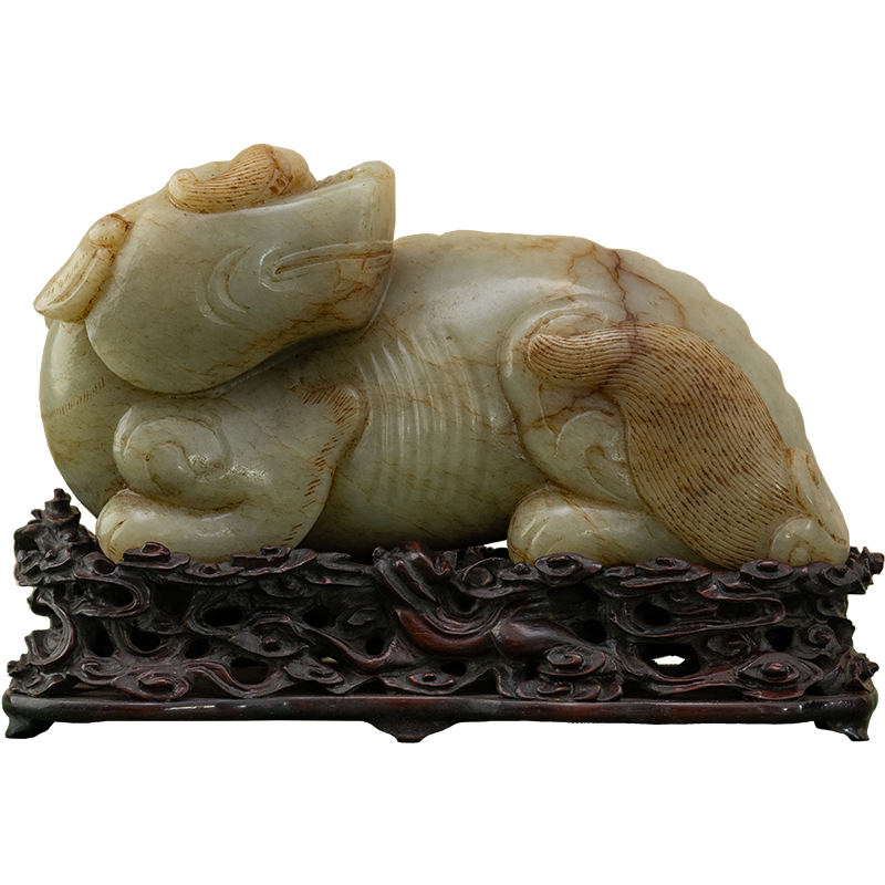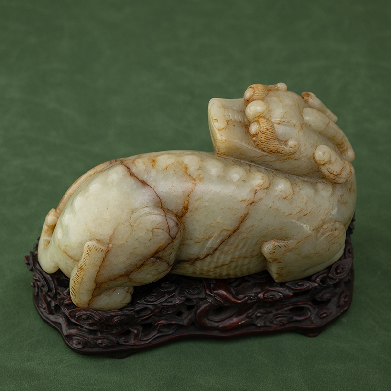 清代 玉雕瑞兽摆件(红木座)古董玉器收藏和田玉雕摆件1896.7g