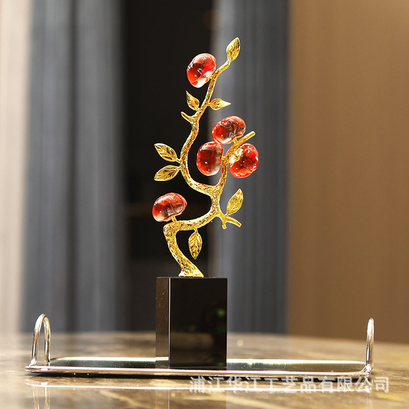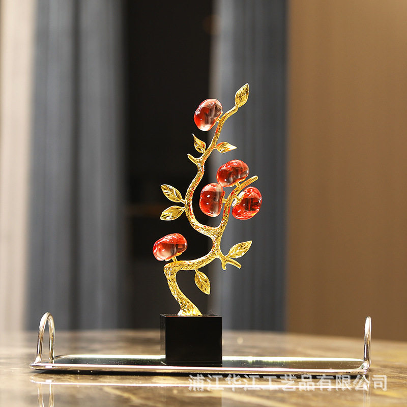 创意柿子果树摆件客厅家居柿柿如意假花装饰品结婚电视柜玄关