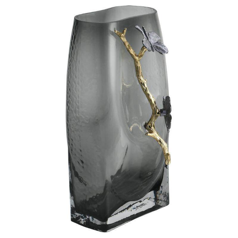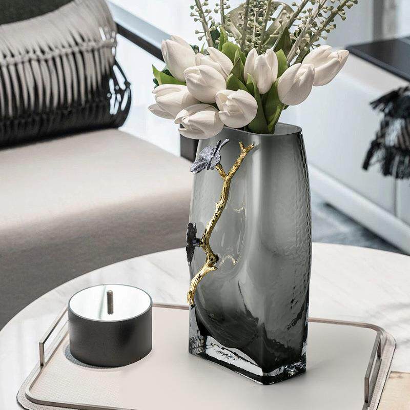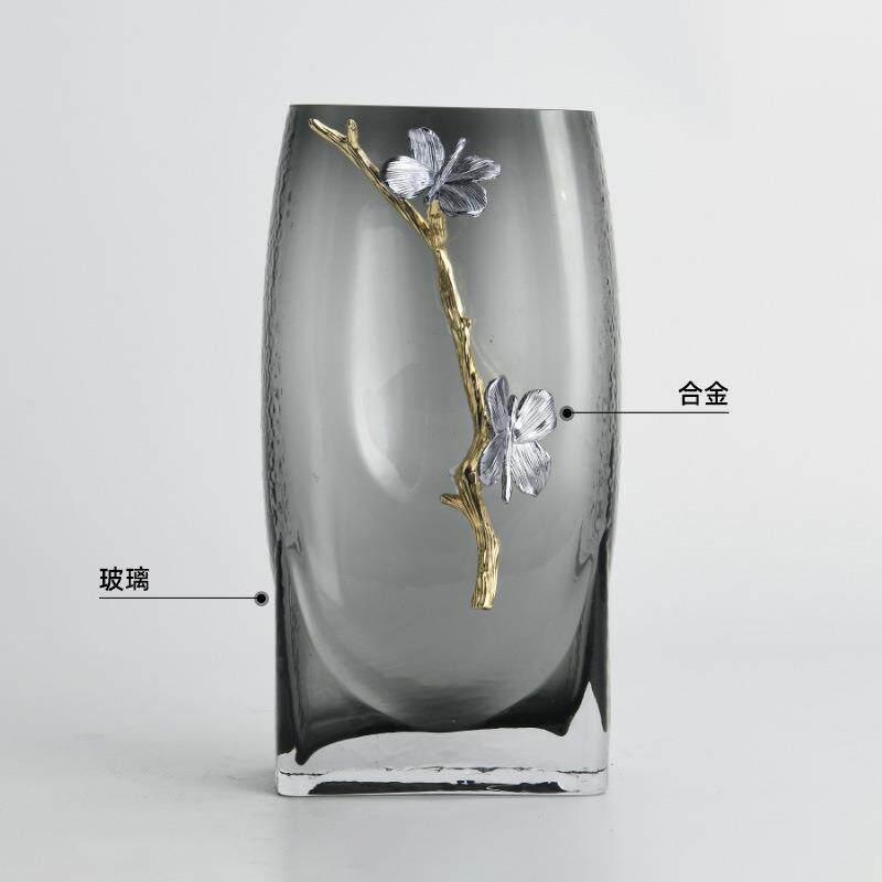 现代轻奢烟灰色玻璃花器花瓶客厅干花样板售楼处桌面软装饰品摆件