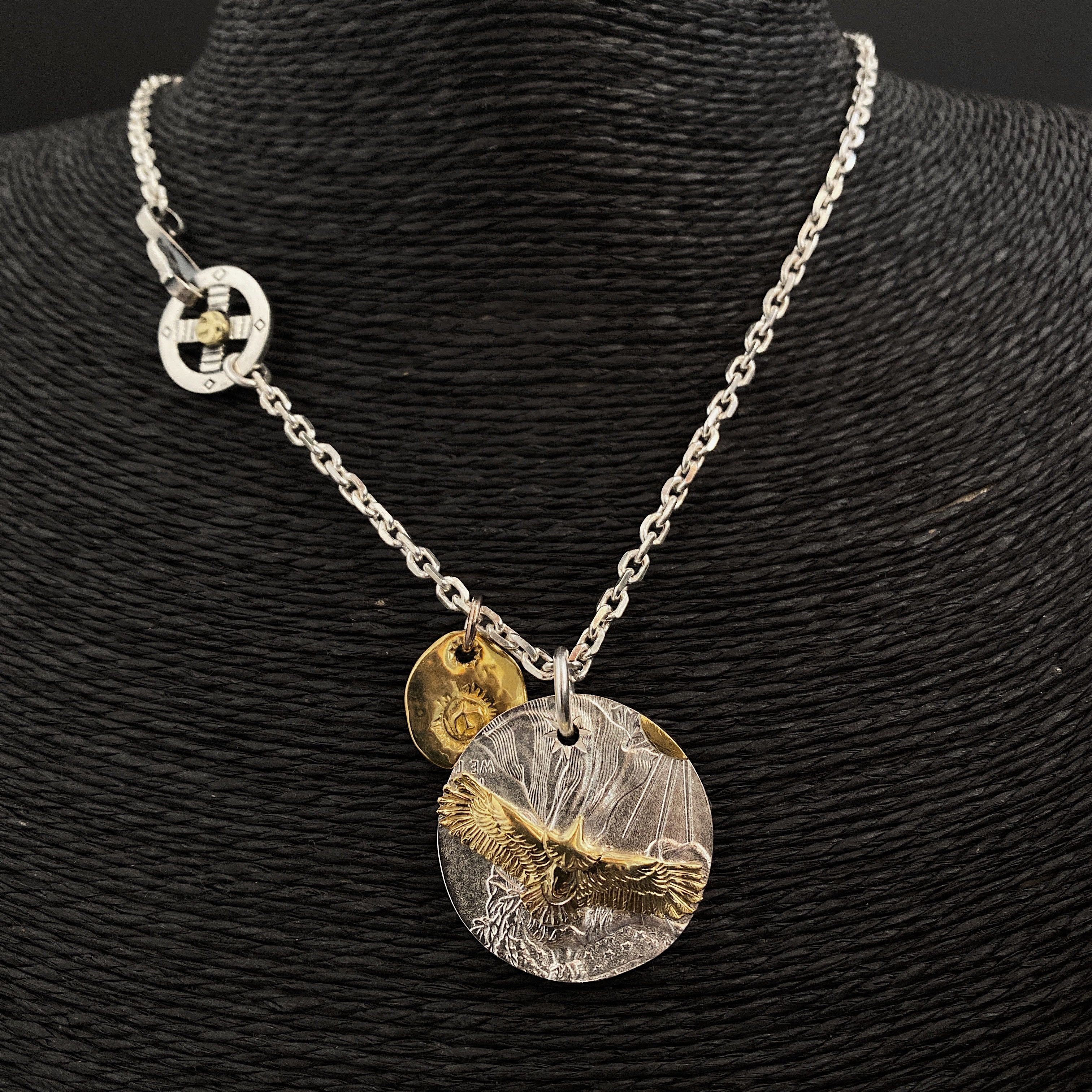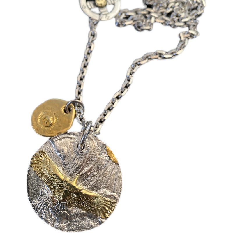 不同银匠 925纯银飞鹰圆形银饼自由女神银币花纹吊坠朋克潮男项链