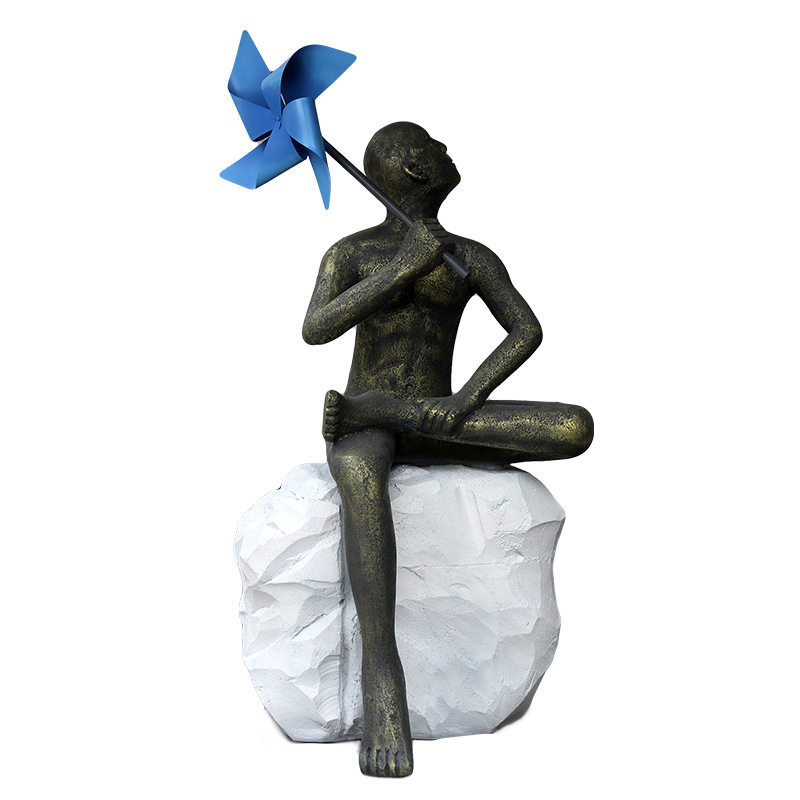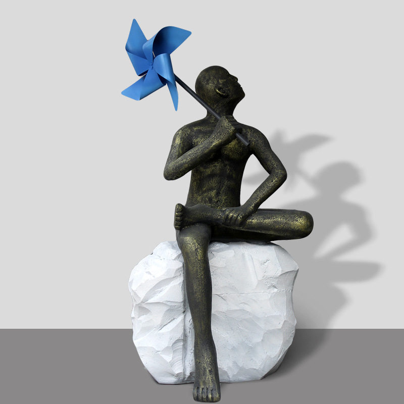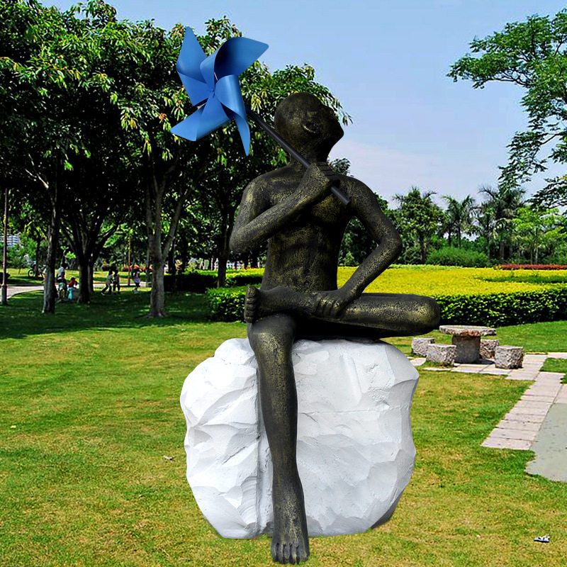 定制大型玻璃钢人物雕塑户外园林景观风车少年抽象树脂圆雕工艺品