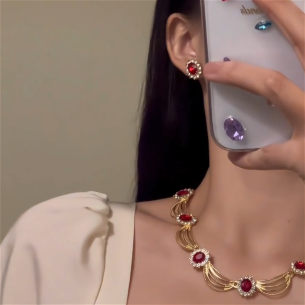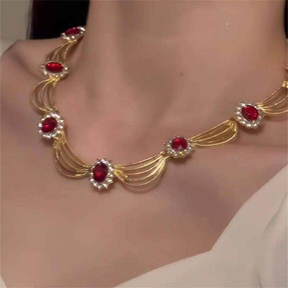 zoozmomo宫廷夸张复古风红色锆石项链女高级感气质vintage锁骨链