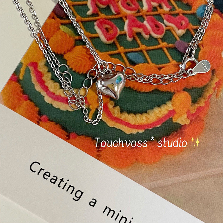 TOUCHVOSS 韩国925银轻奢气质小爱心锁骨链简约立体桃心小项链