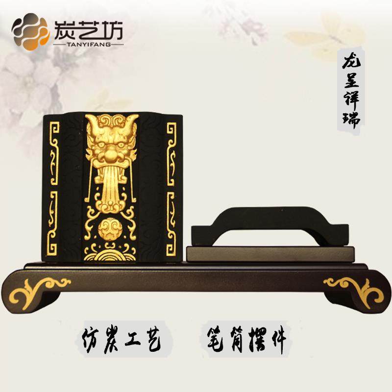 高档创意炭筒雕桌笔中式办公室书房面摆件送老师户朋友领导客商务