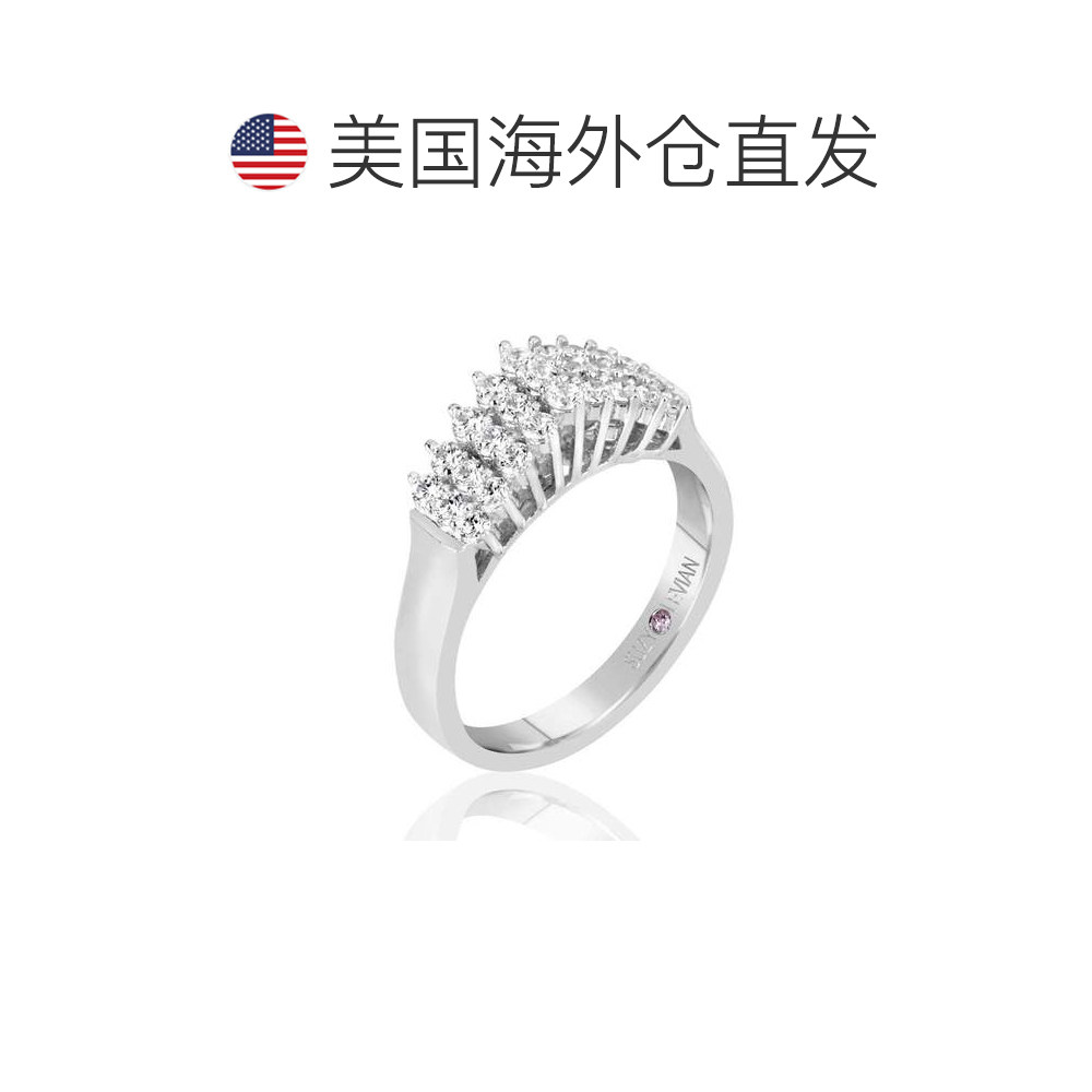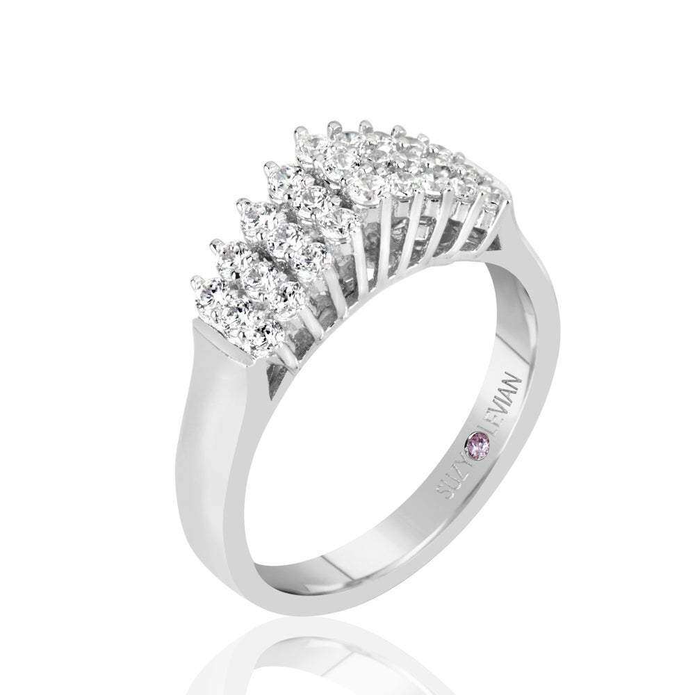 自营 Suzy Levian 纯银白色立方氧化锆 3 排戒指 - 白色 美国奥莱