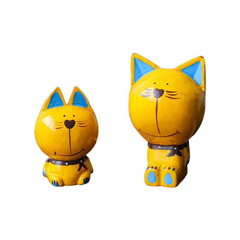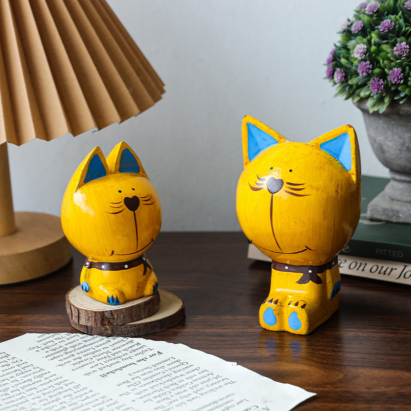 北欧简约卡通黄色加菲猫动物木质摆件家居客厅餐厅创意可爱装饰品