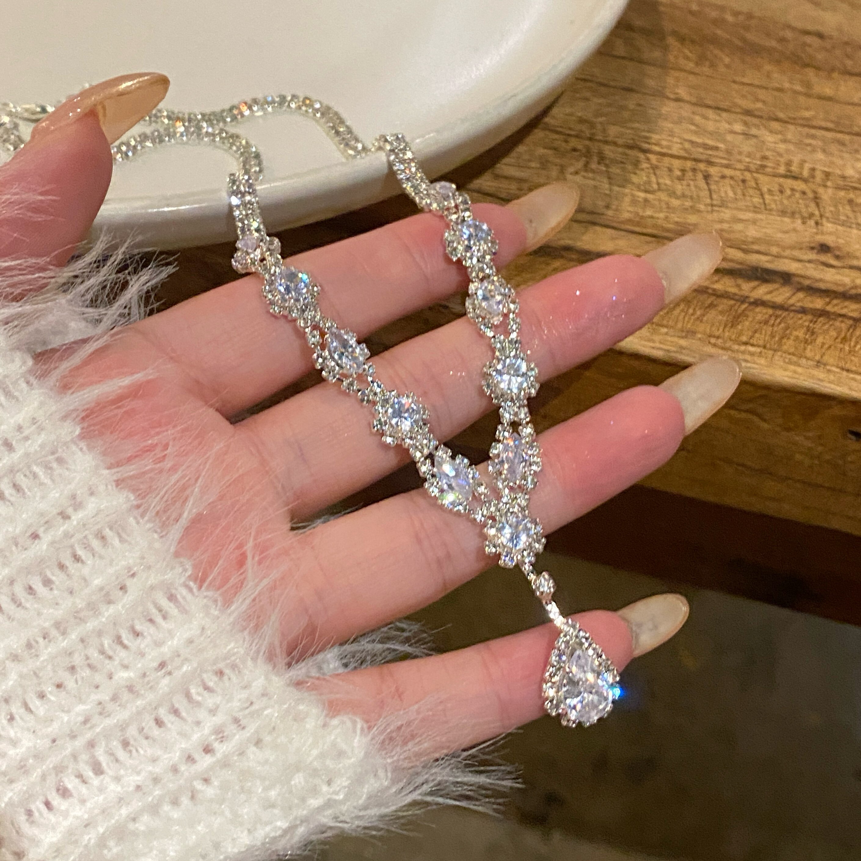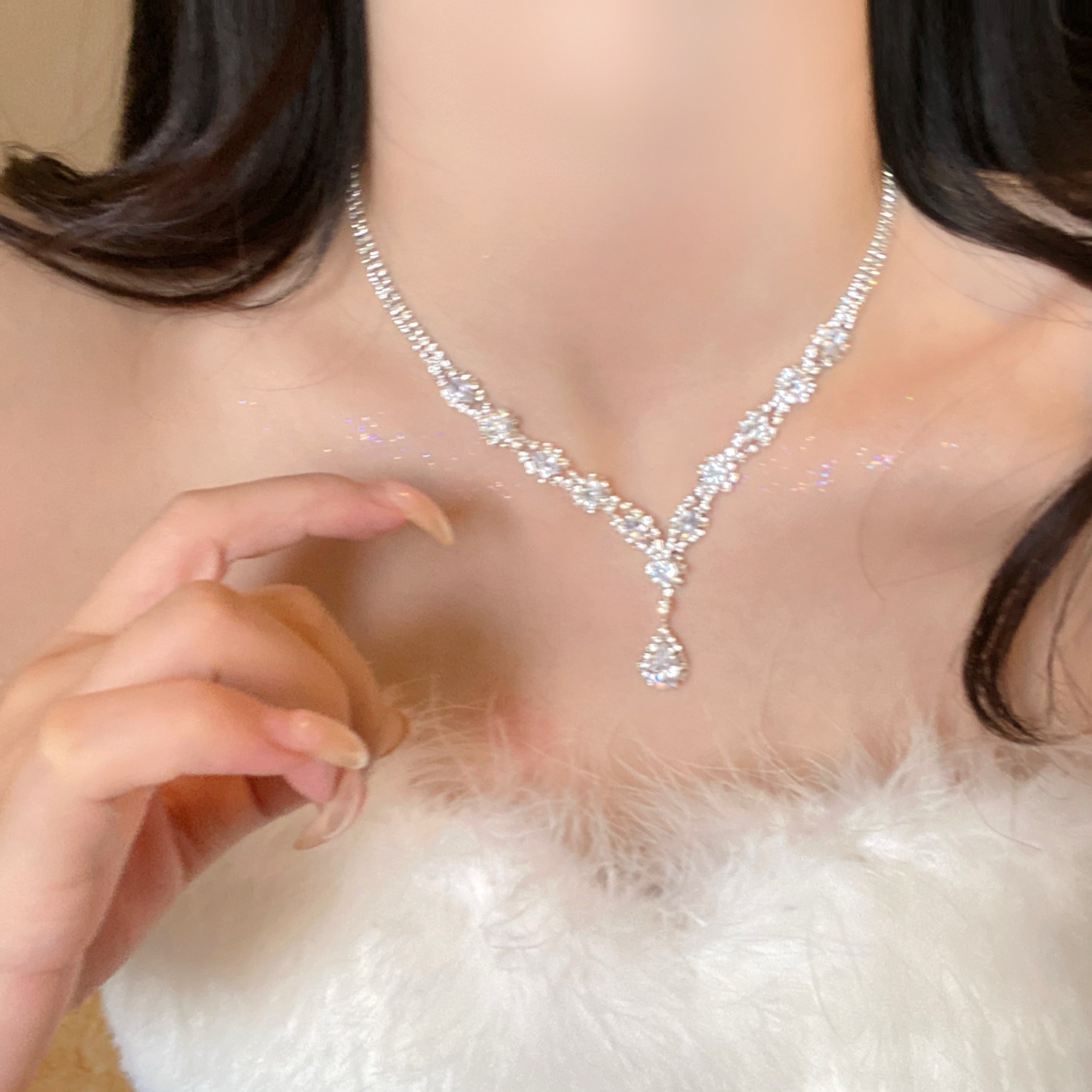 「假面舞会」水滴锆石项链女高级感轻奢小众颈链锁骨链礼服