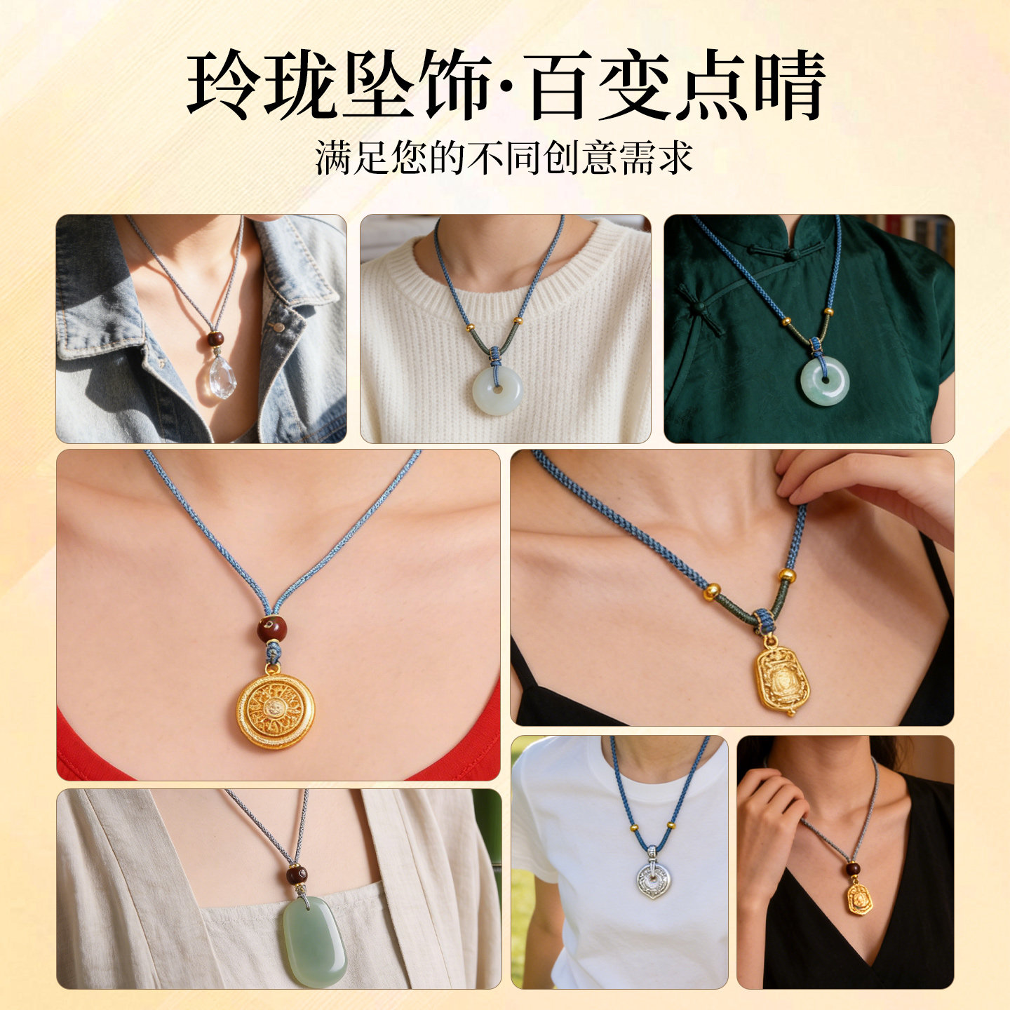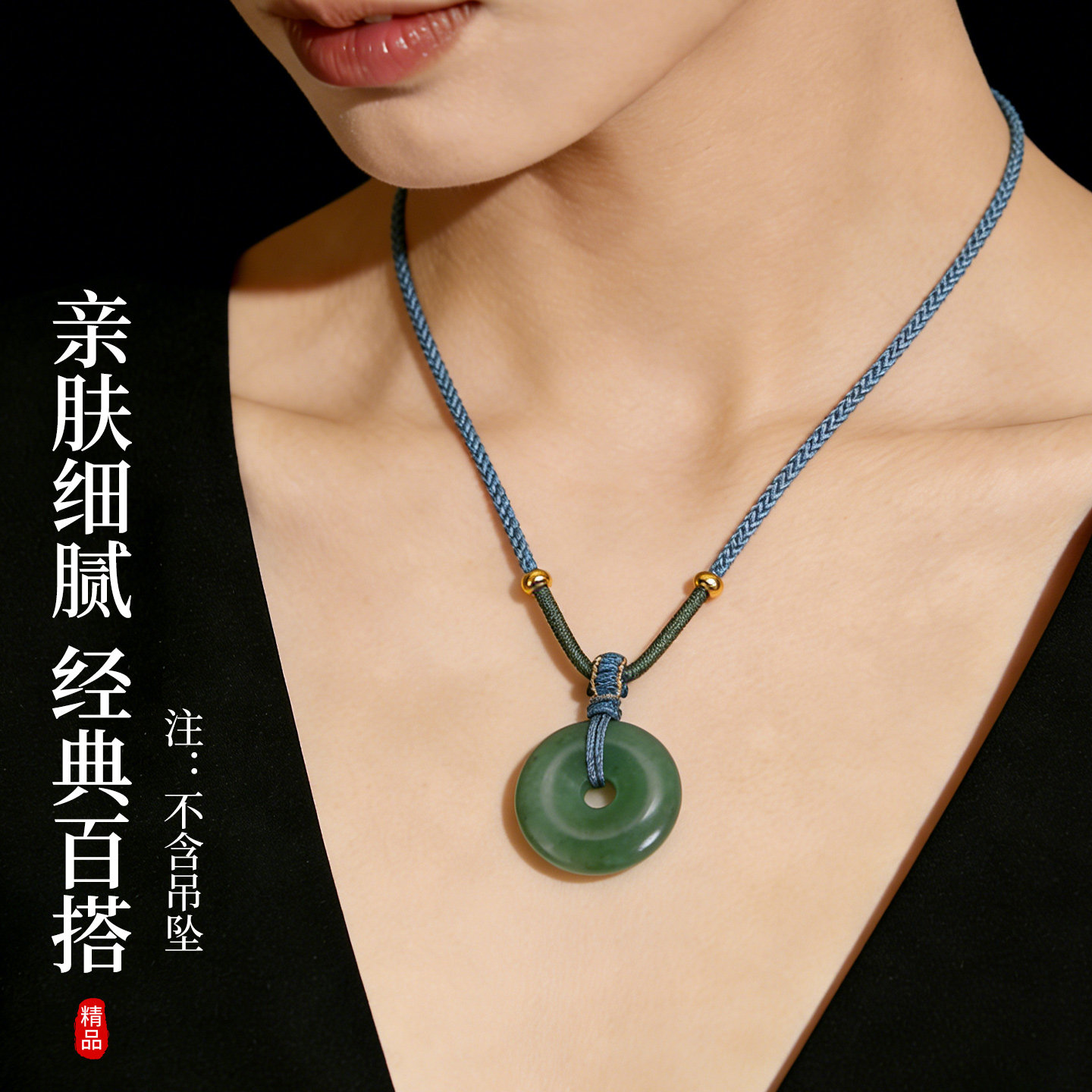 吊坠挂绳黄金平安扣玉佩项链绳男女款玉器玉石和田玉手工编织绳子