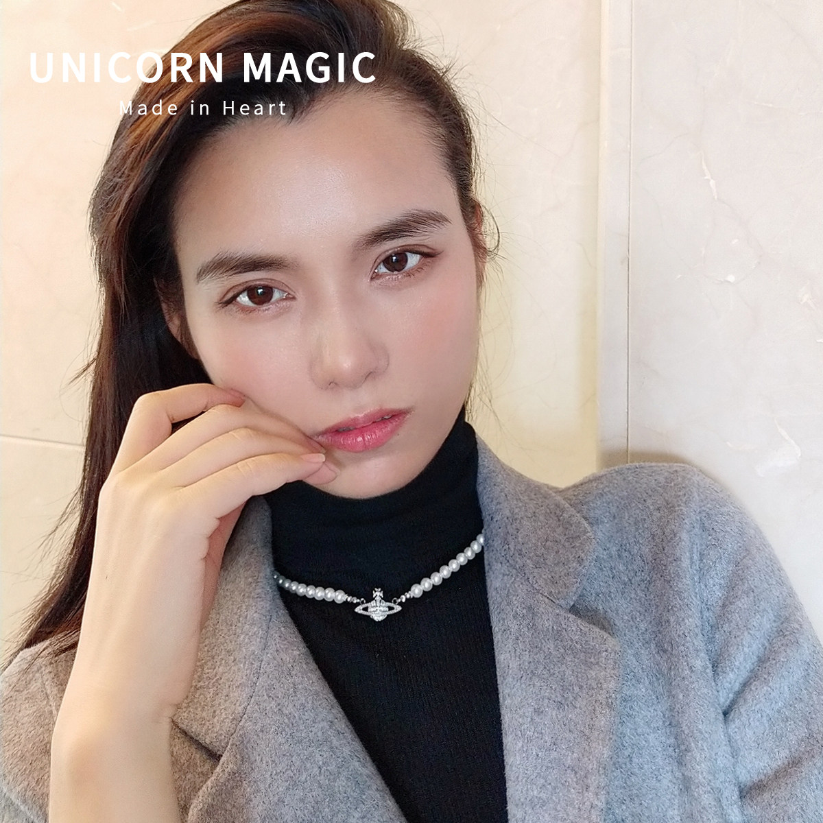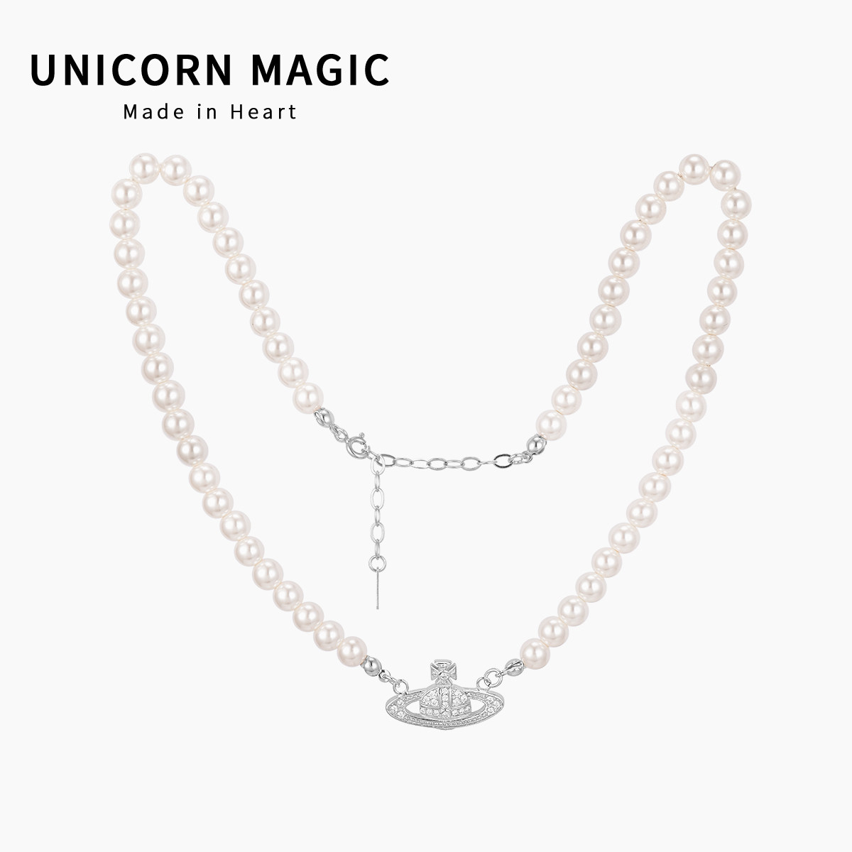 星球土星珍珠项链时尚轻奢小众锁骨链西太后纯银项链女法式复古