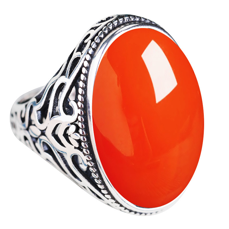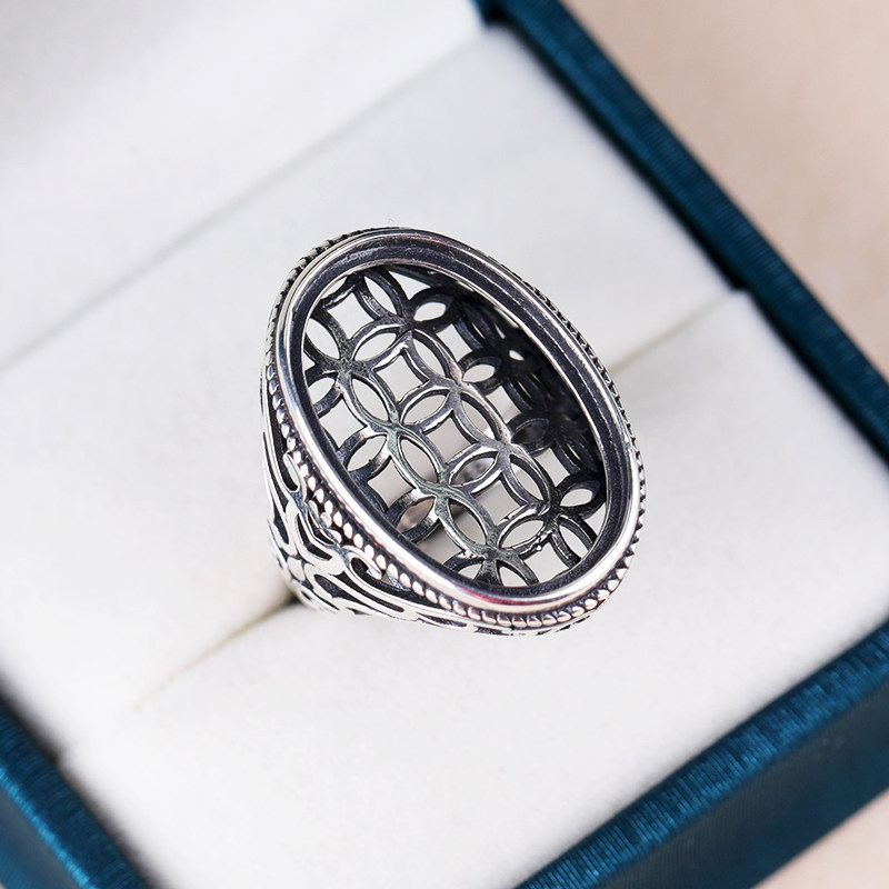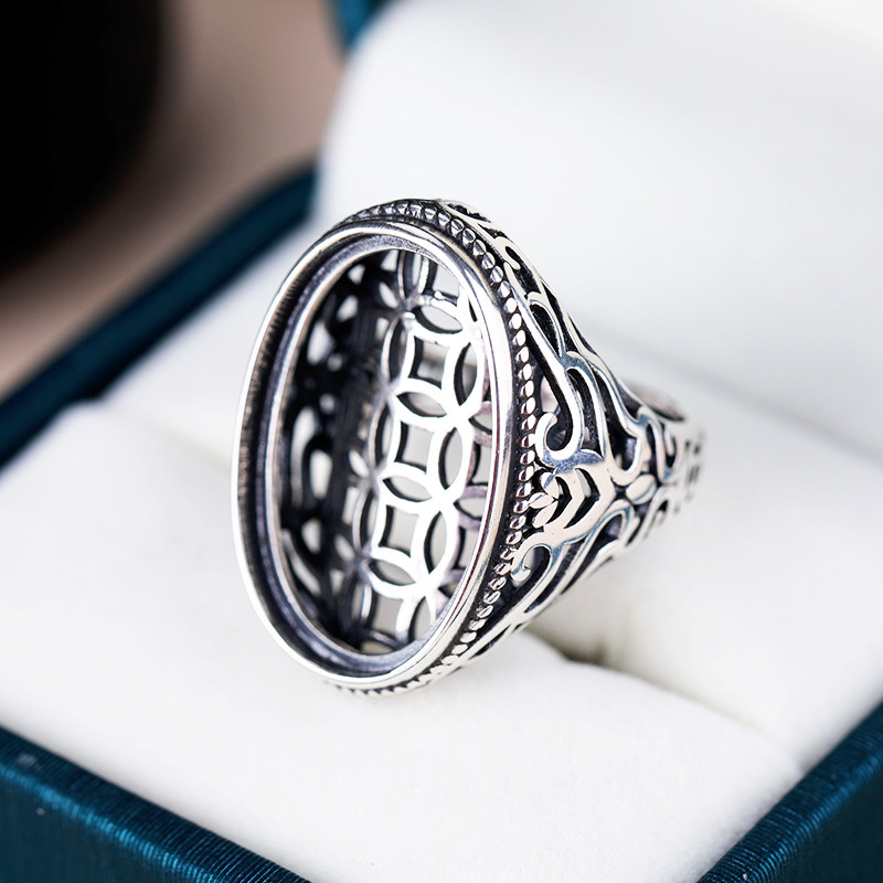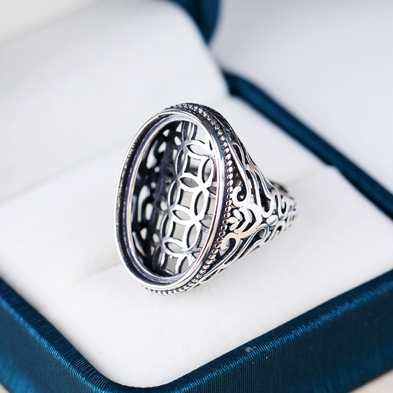 戒托男士S925纯银戒指空托复古镶嵌南红绿松石戒面开口银托 16*24