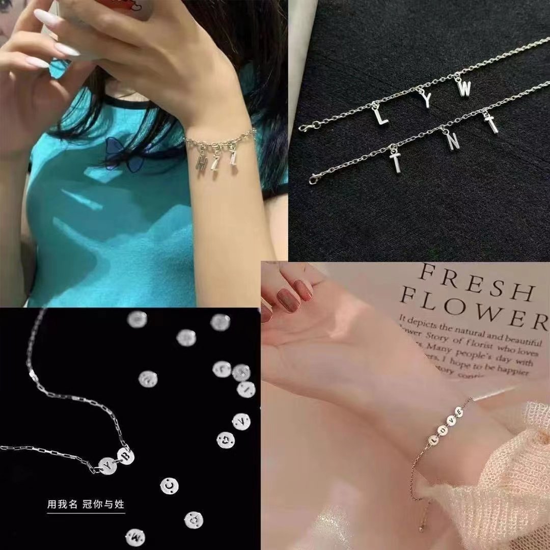 ins定制26字母手链圆片不锈钢不掉色手环情侣闺蜜diy礼物手串