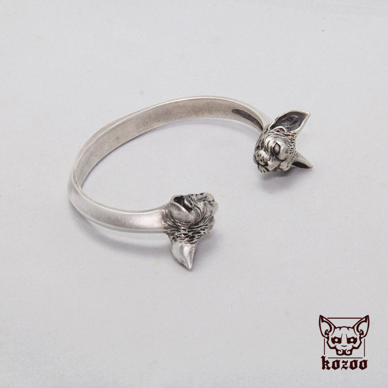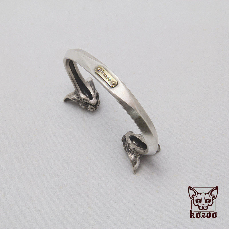 kozoostudio原创设计斯芬克斯银饰手镯S925错金银非遗纯银镶嵌