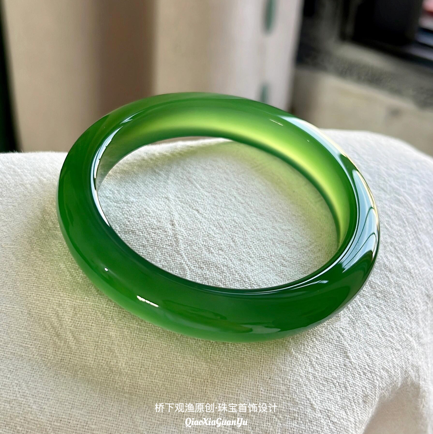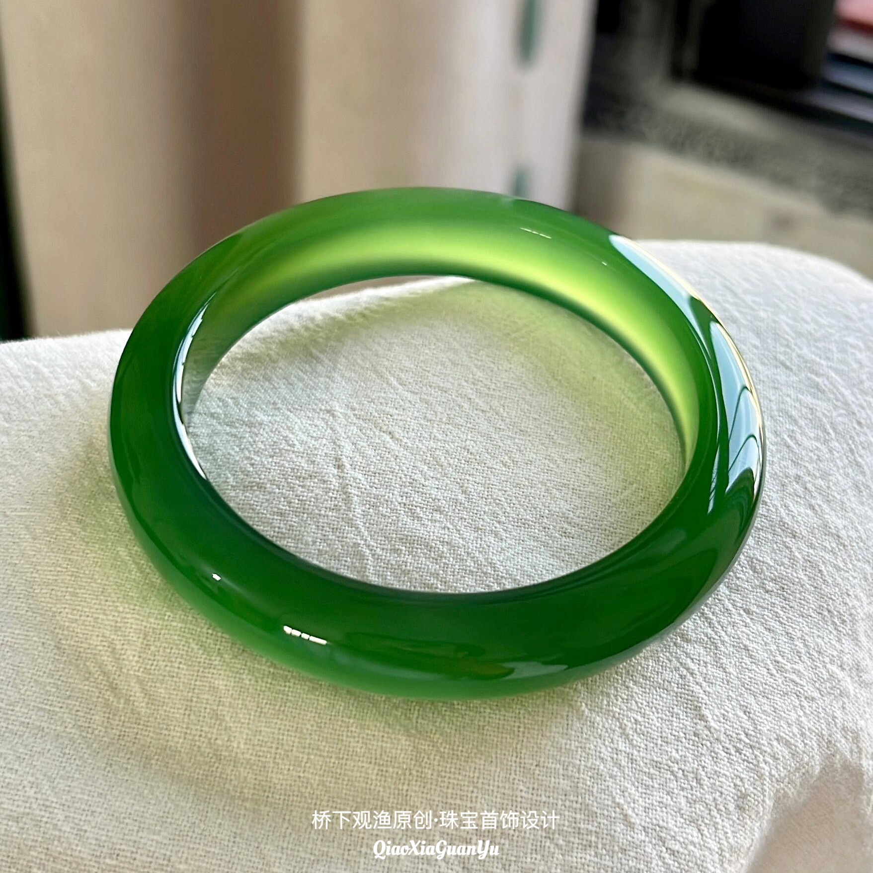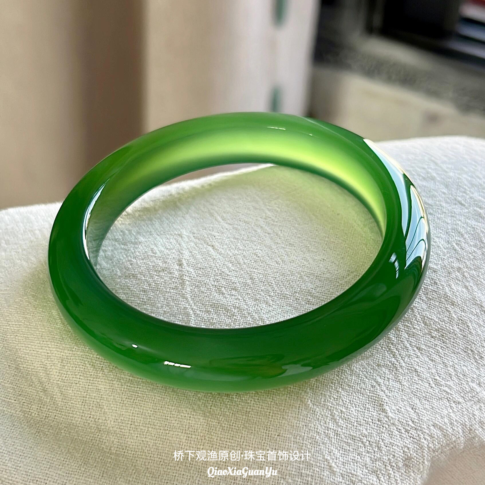 天然冰种菠菜绿玉髓手镯女帝王绿玛瑙玉镯绿色翡翠色玉镯子送礼物