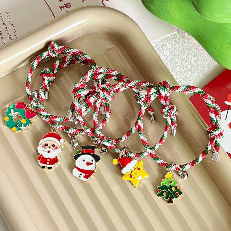 新款圣诞节帽子星星铃铛手链可爱卡通圣诞老人雪人情侣礼物手绳