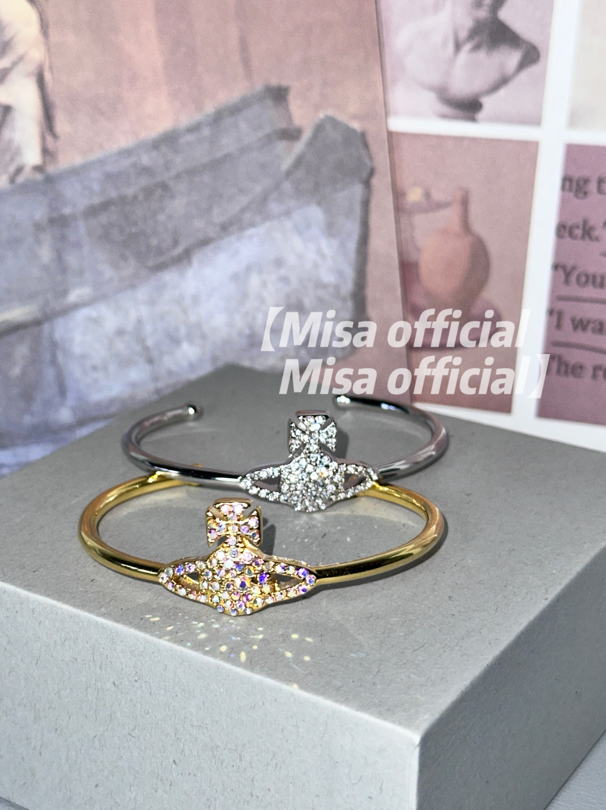 Misa officail|西土星金色银色开口满钻手镯可调节百搭小众高级