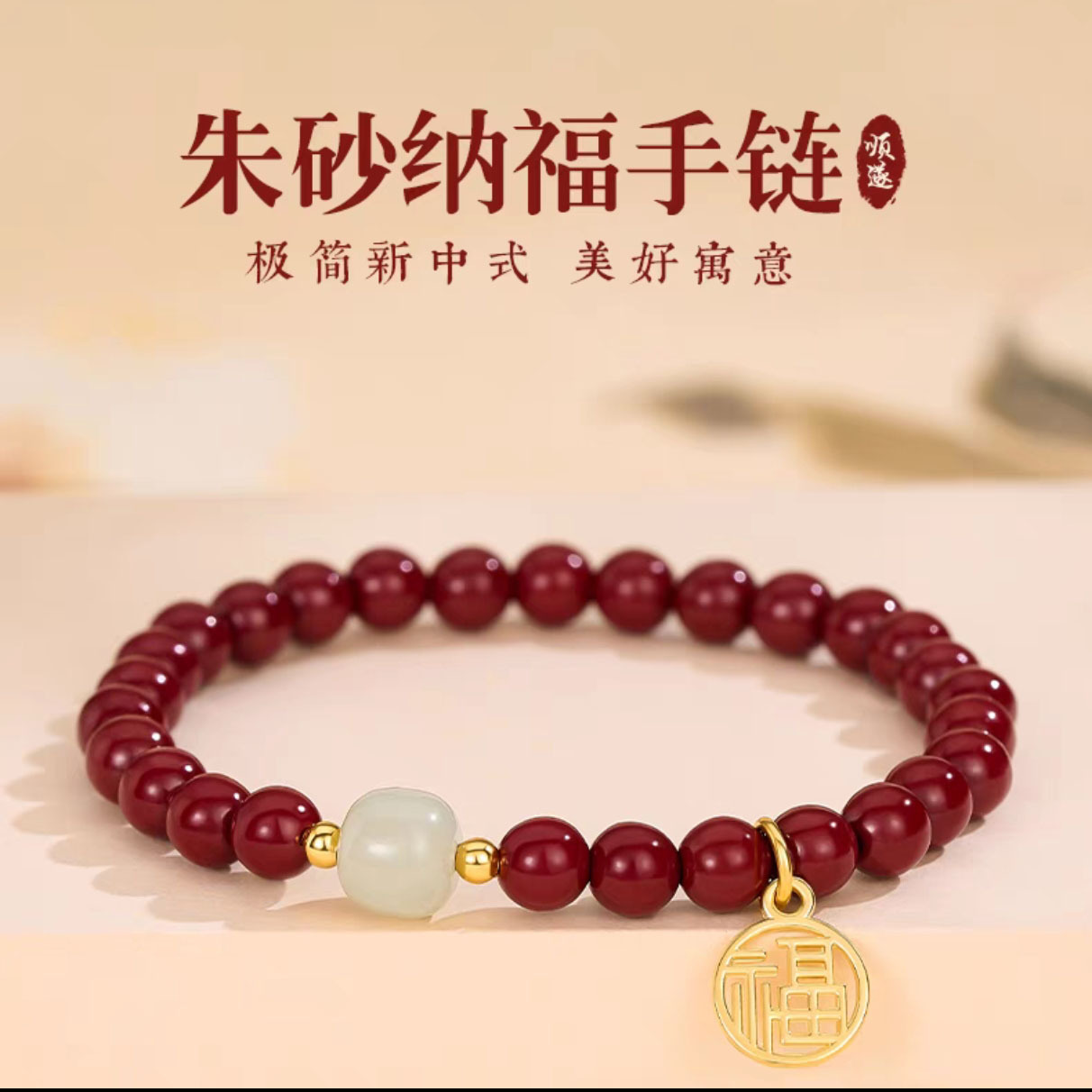 原矿帝王砂朱砂手链和田玉福牌女式本命年红色情侣礼物
