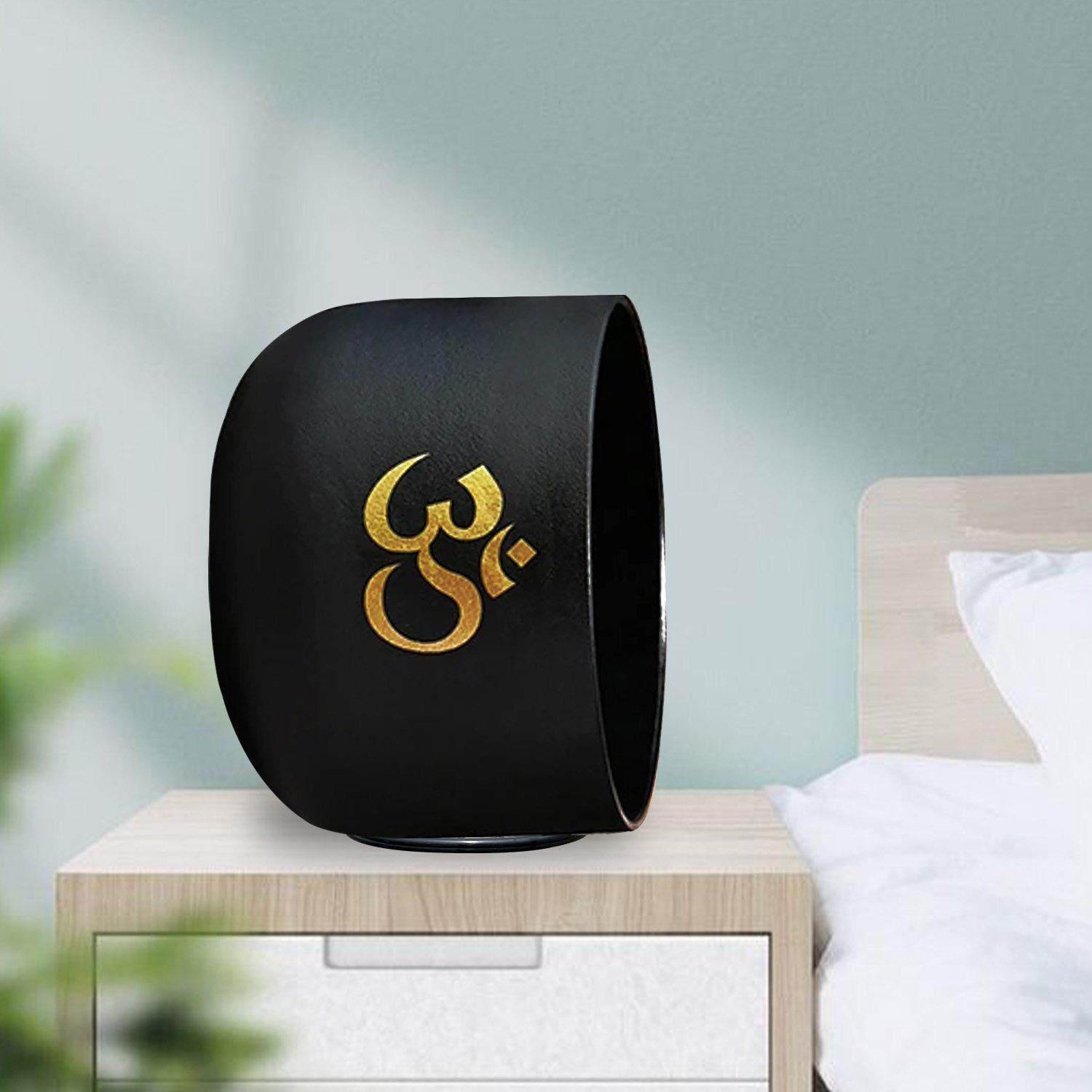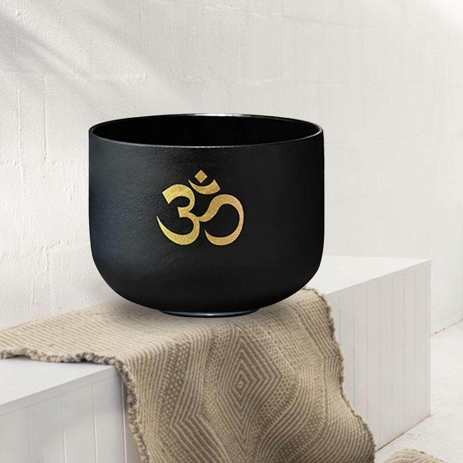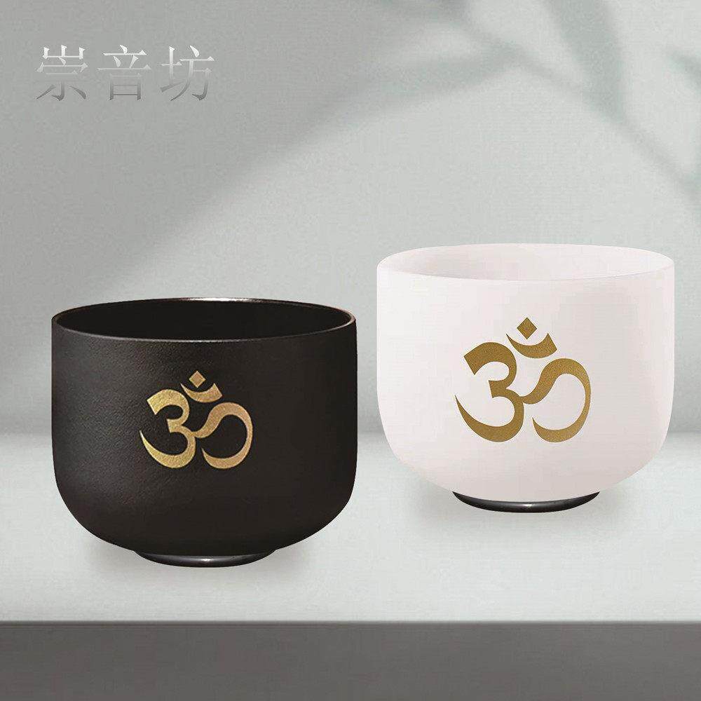 水晶钵镀欧姆纹黑色瑜伽音钵颂钵静心解压音乐碗7音调疗愈乐器瑜