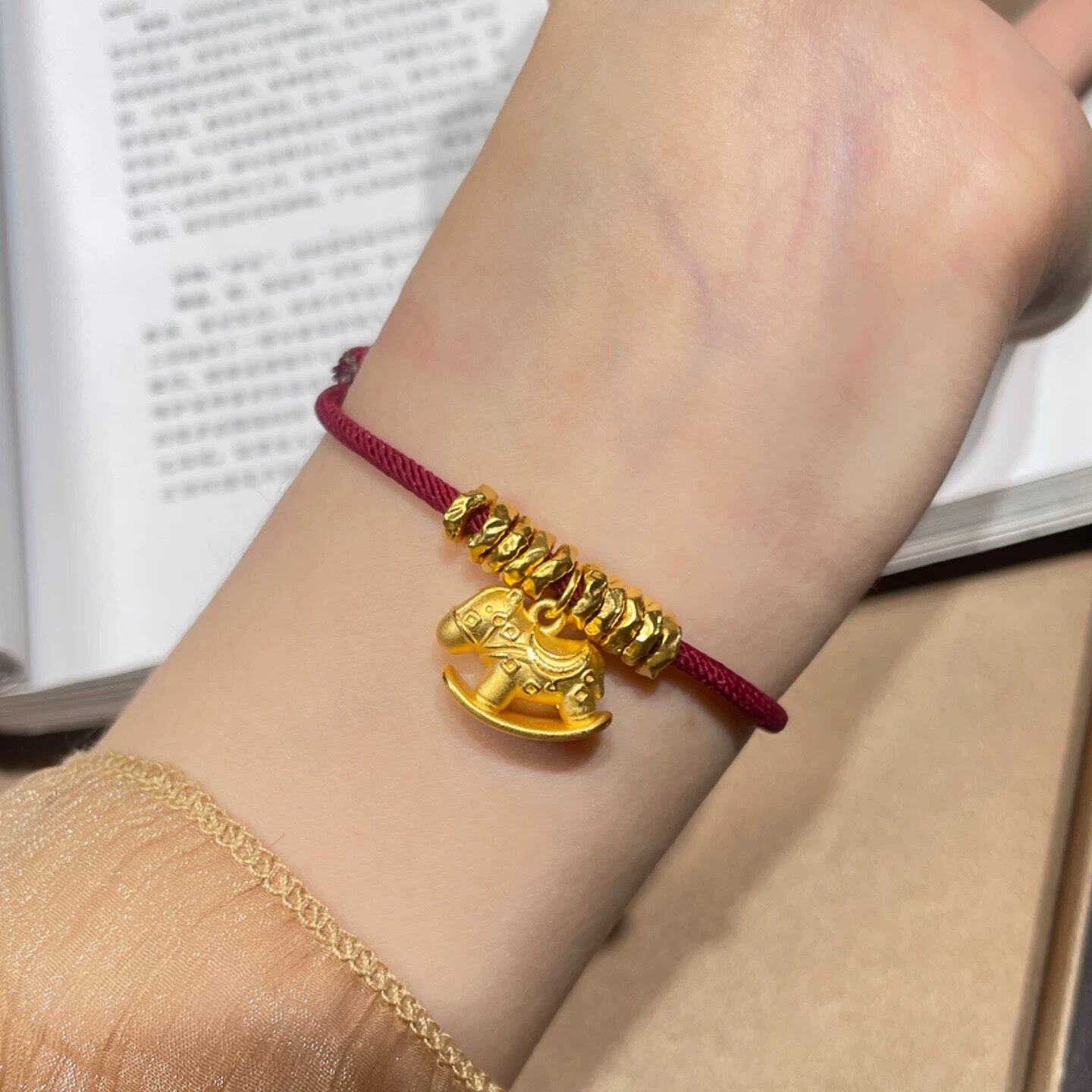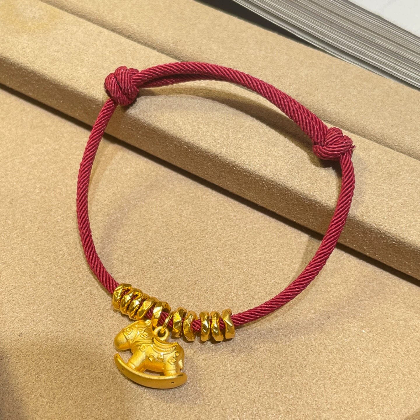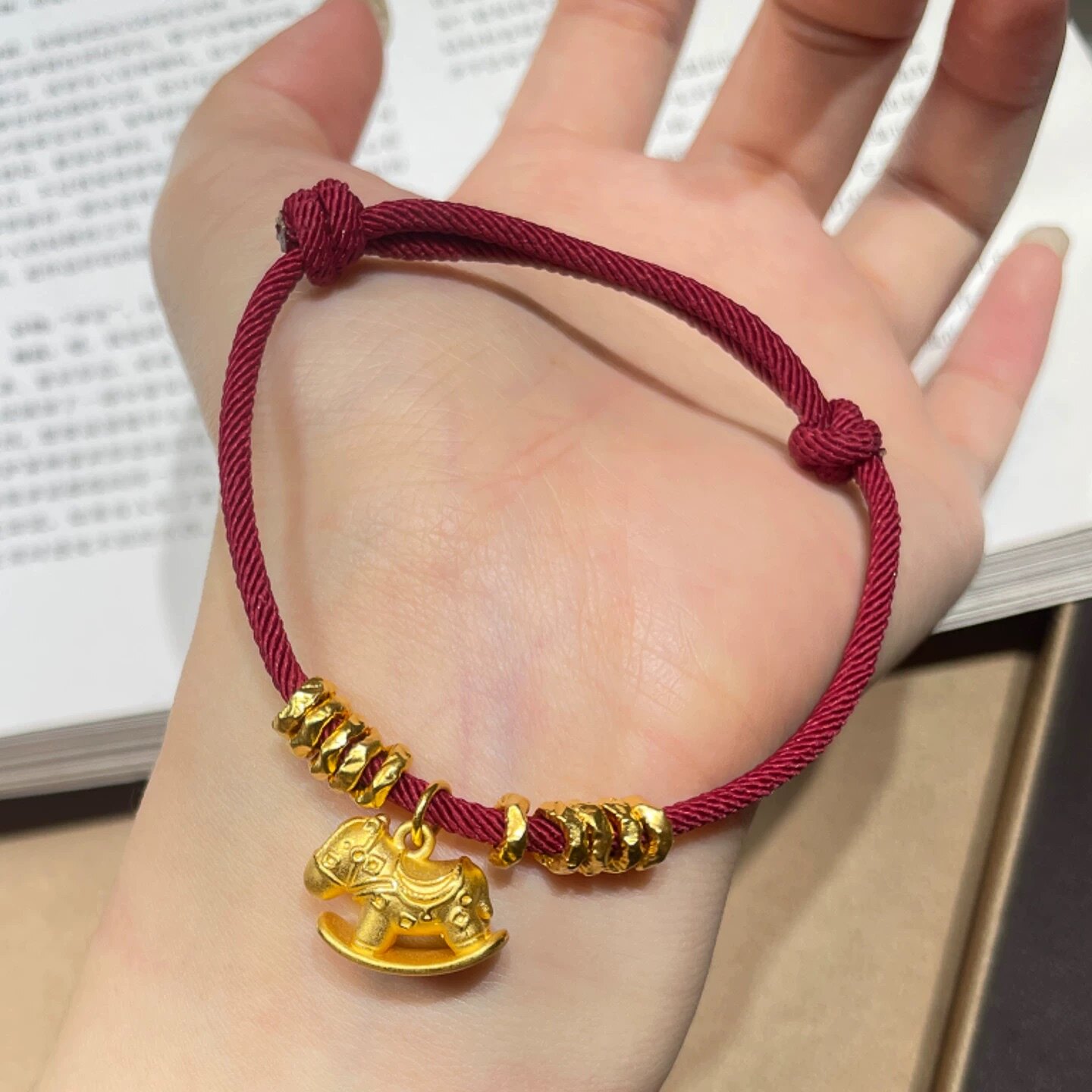 新中式本命年金色小马碎银子手链轻奢马年气质高级感红色编绳手饰