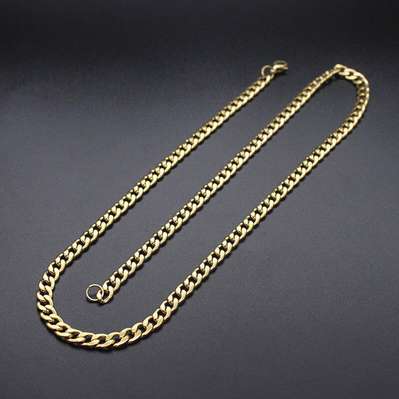 欧美古巴链不锈钢黑色nk链钛钢金色真空电镀男士项链厂家一件新款