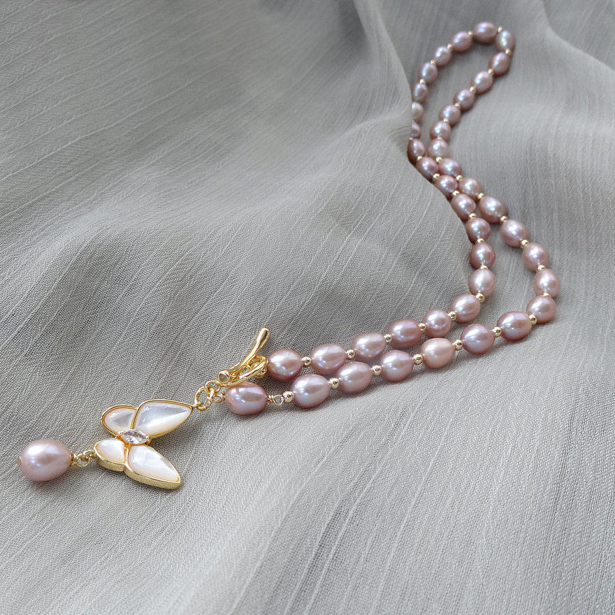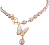 坠落人间高品质紫色淡水珍珠项链蝴蝶吊坠短款锁骨链颈链生日礼物