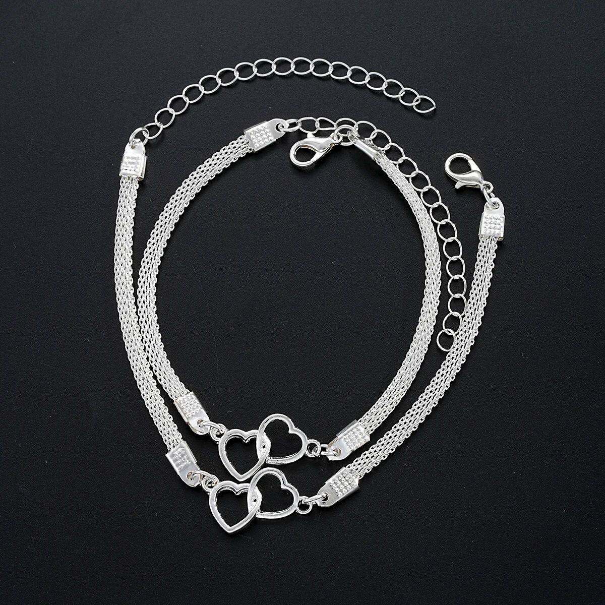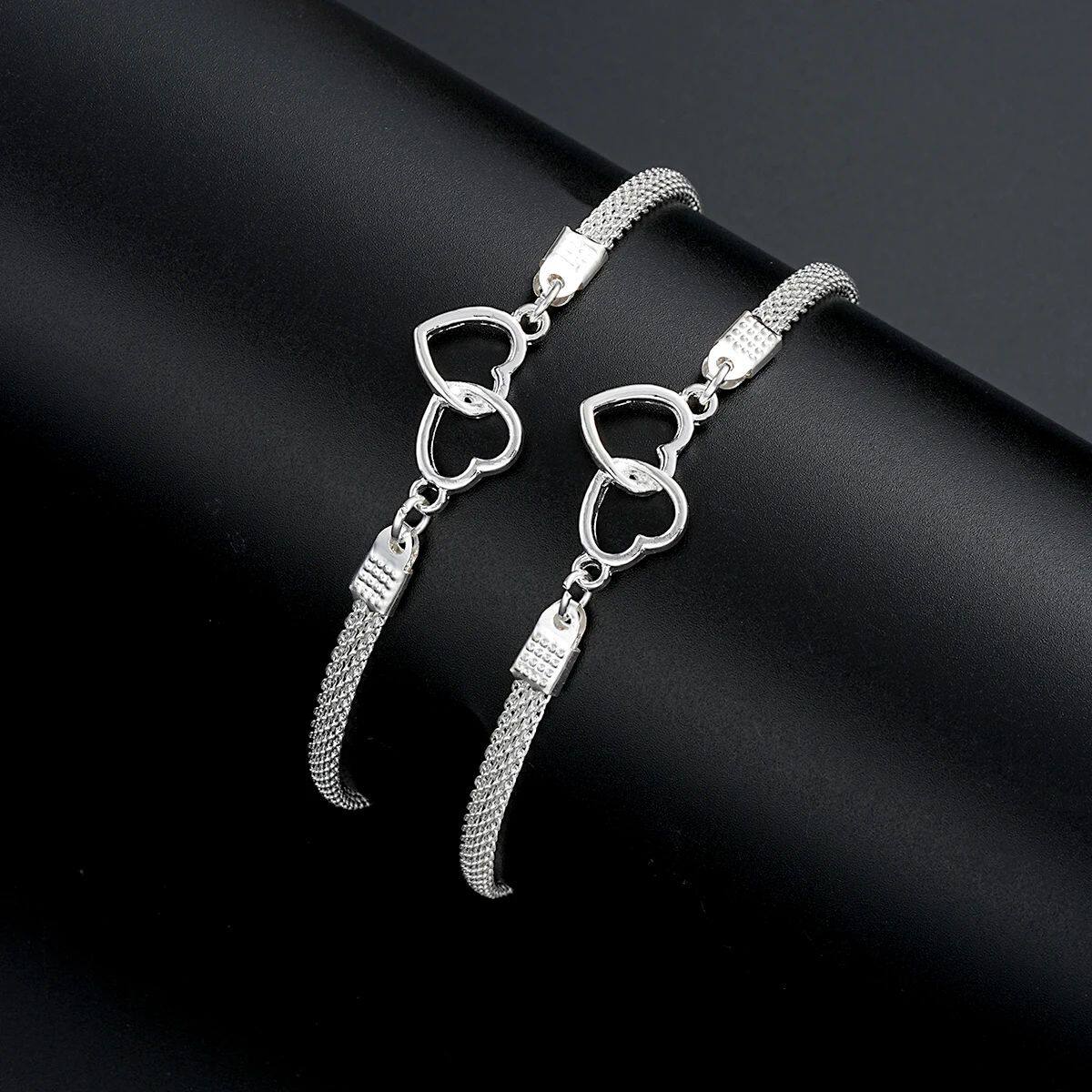 2 Pcs Set Love Heart Couple Bracelets for Women Men Silver C