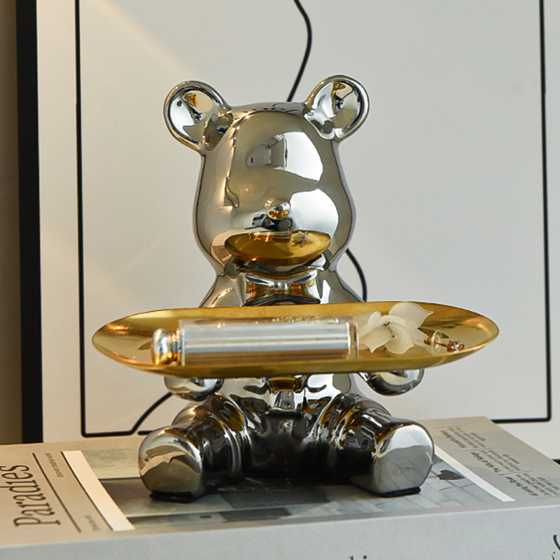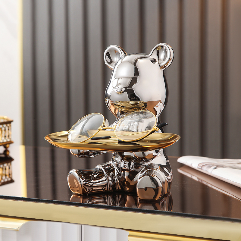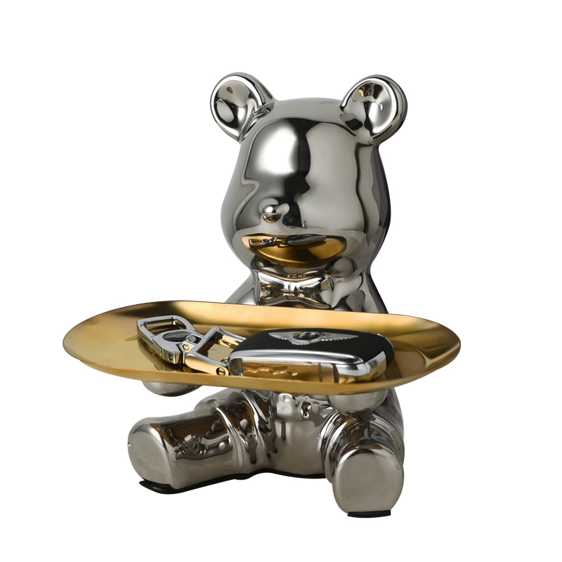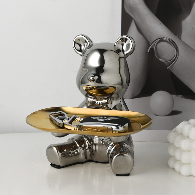 电镀暴力熊存钱罐钥匙收纳托盘摆件轻奢高档玄关客厅电视柜装饰品