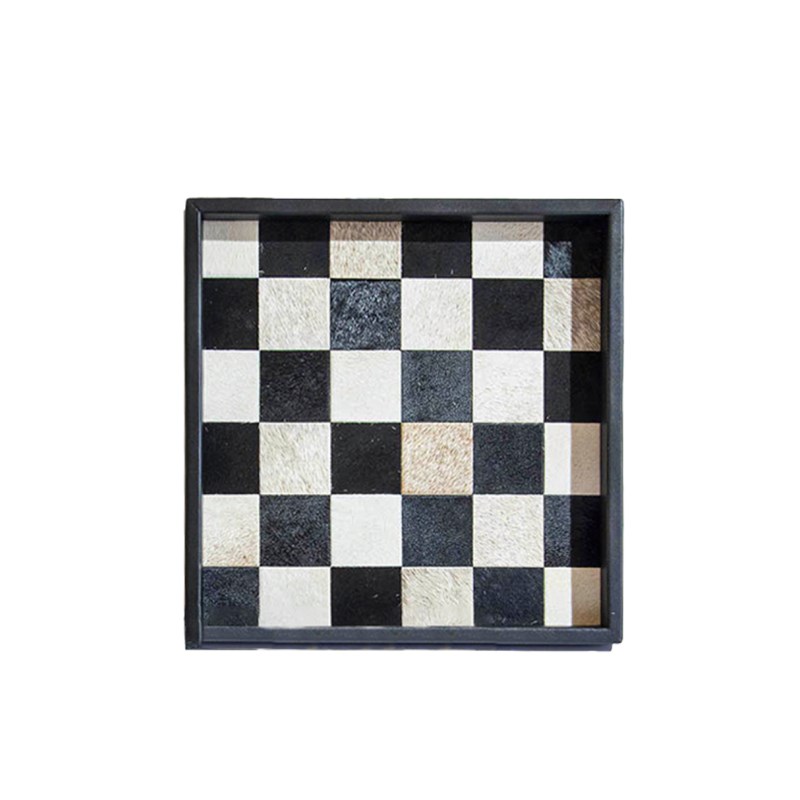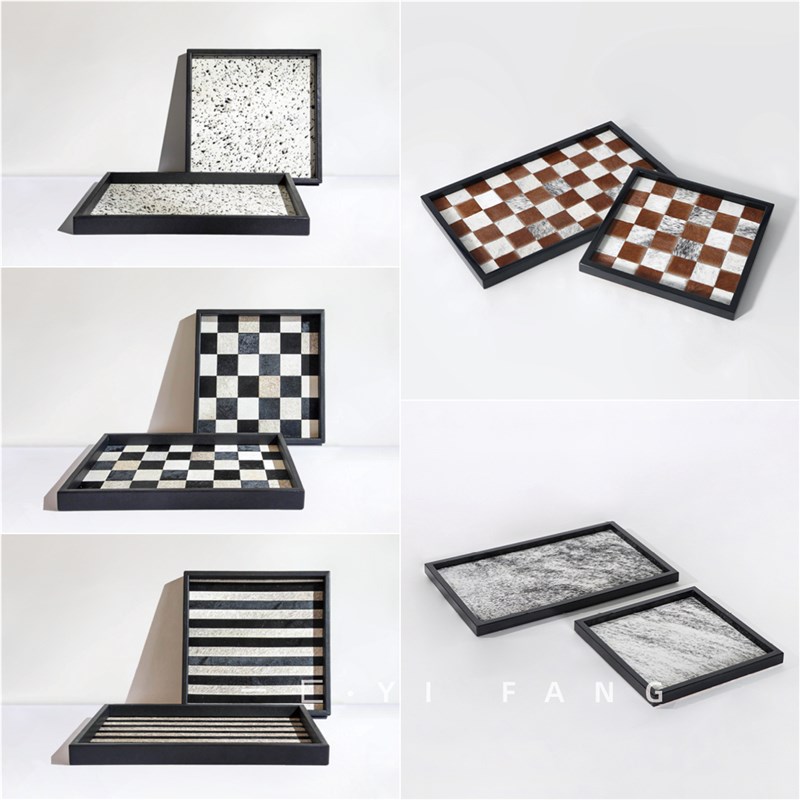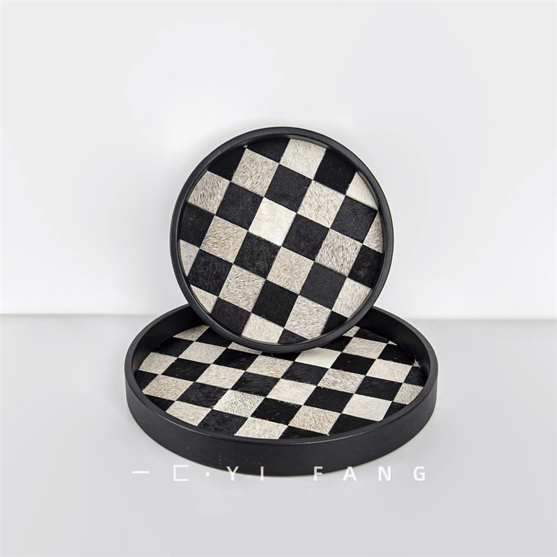 一匚轻奢马毛中古托盘棋盘格家居售楼处样板间卧室衣帽间收纳摆件