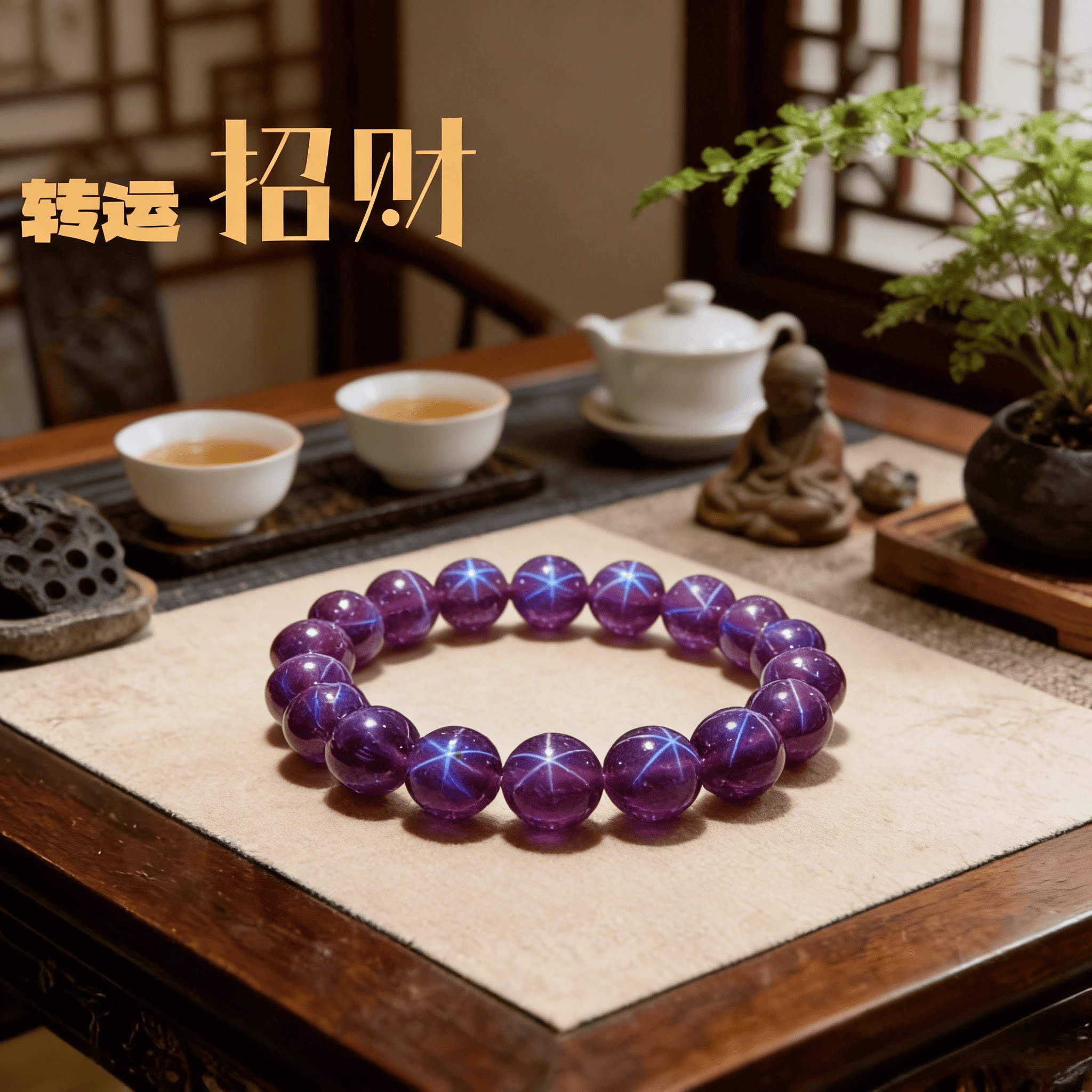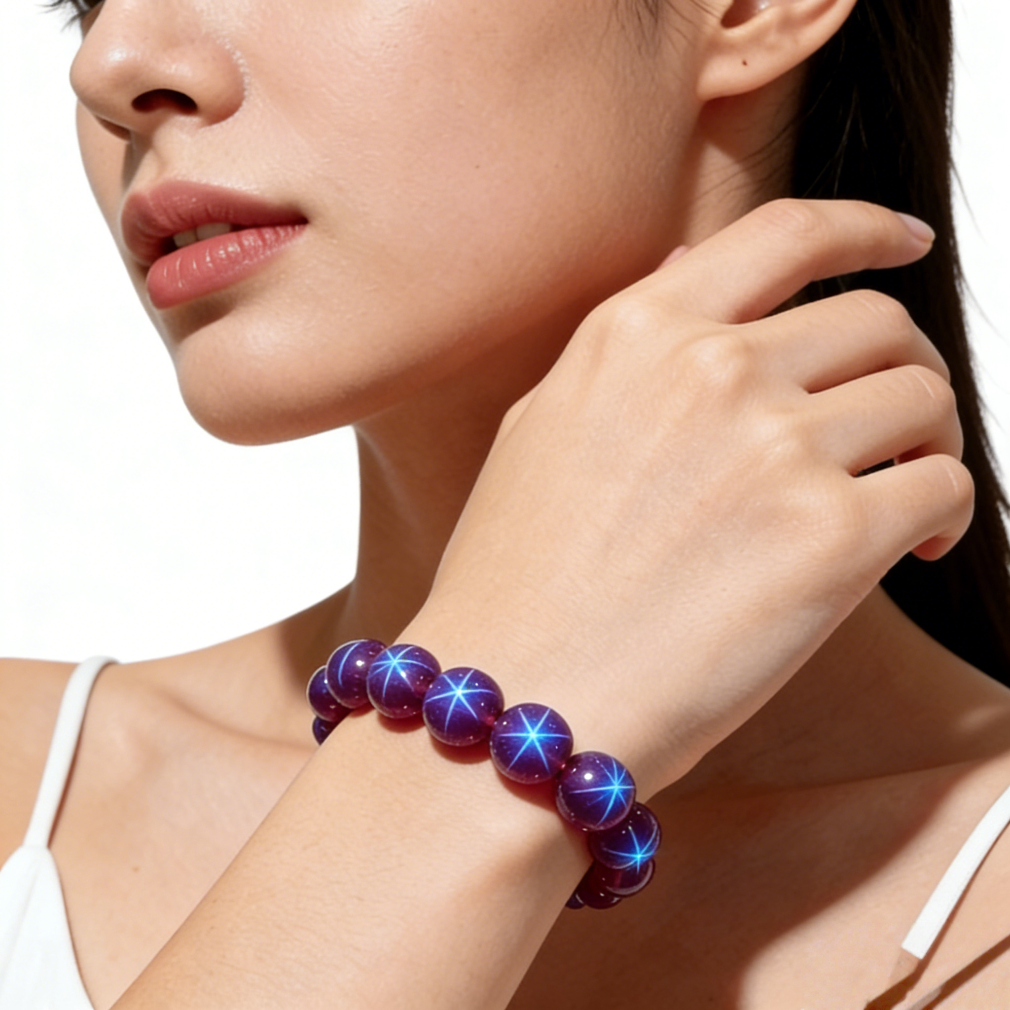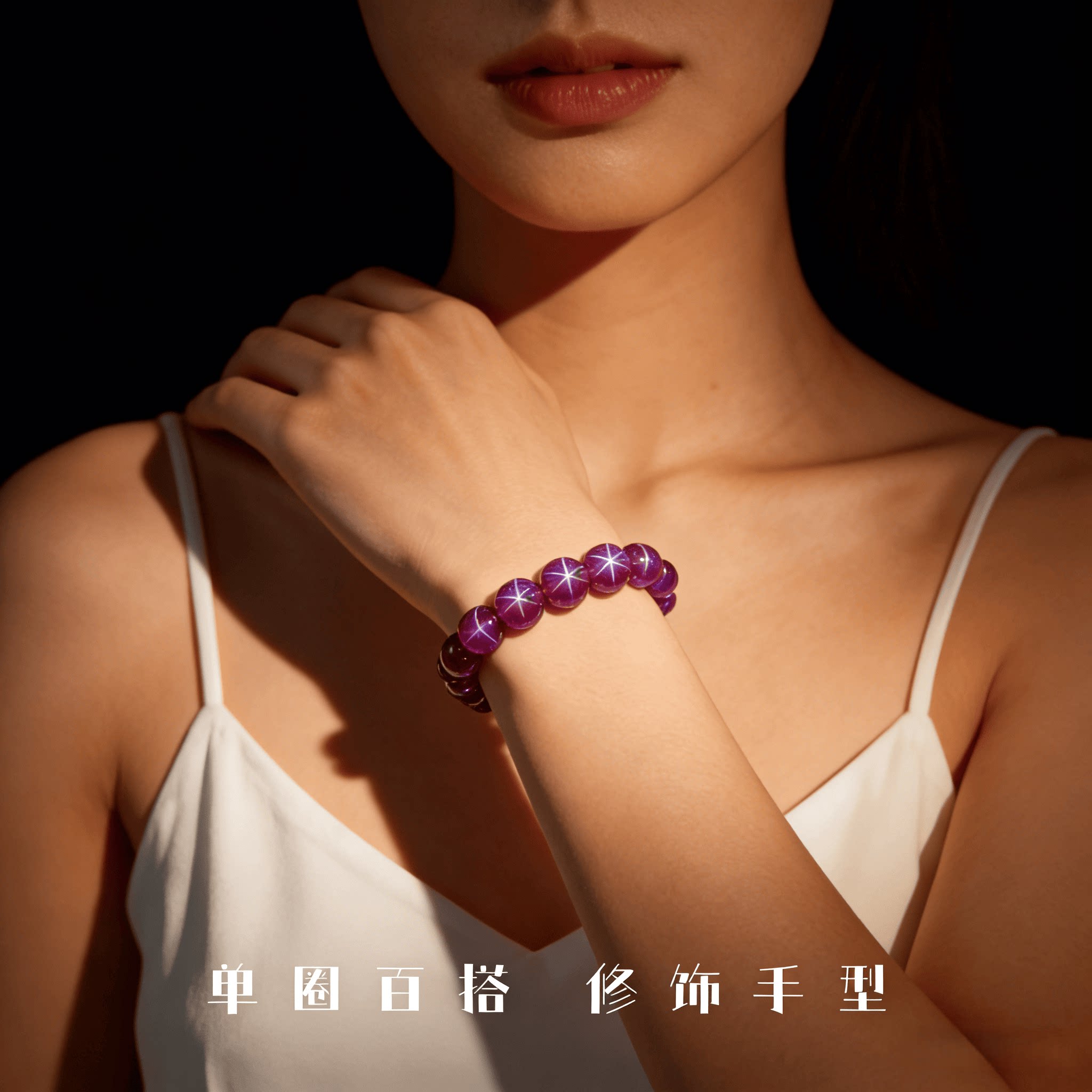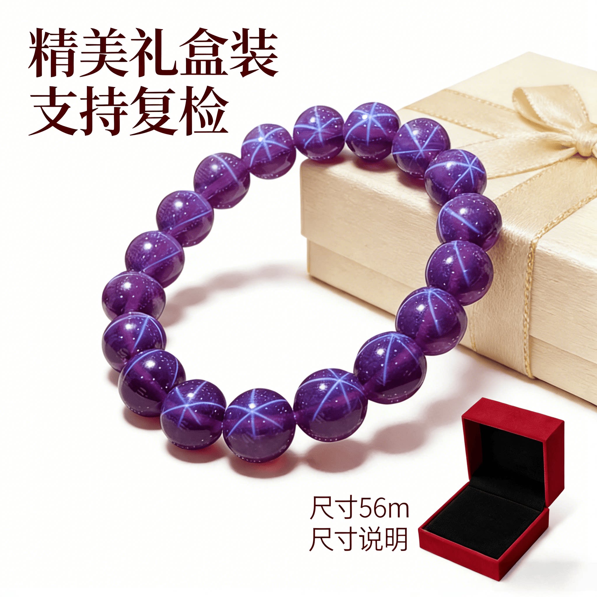 天然紫星光宝石紫水晶礼物紫色手链女透体冰种五角星圆珠单圈手串