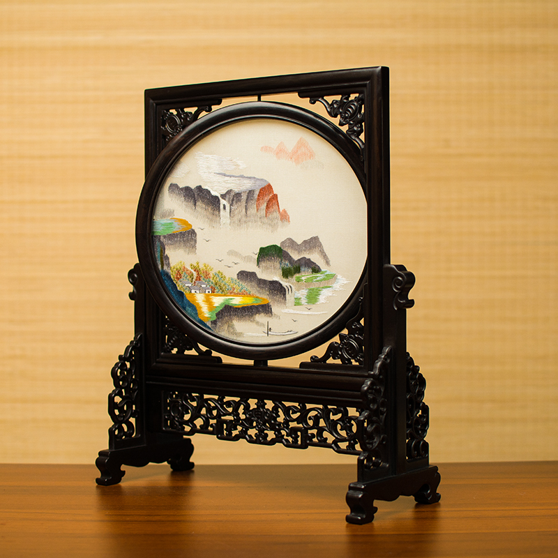 刺绣摆件成品中式双面绣台屏苏州绣美古典屏风饰品送领导长辈礼品