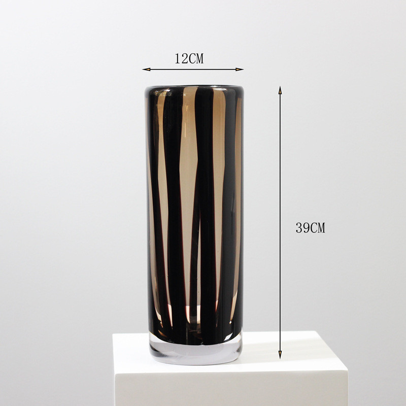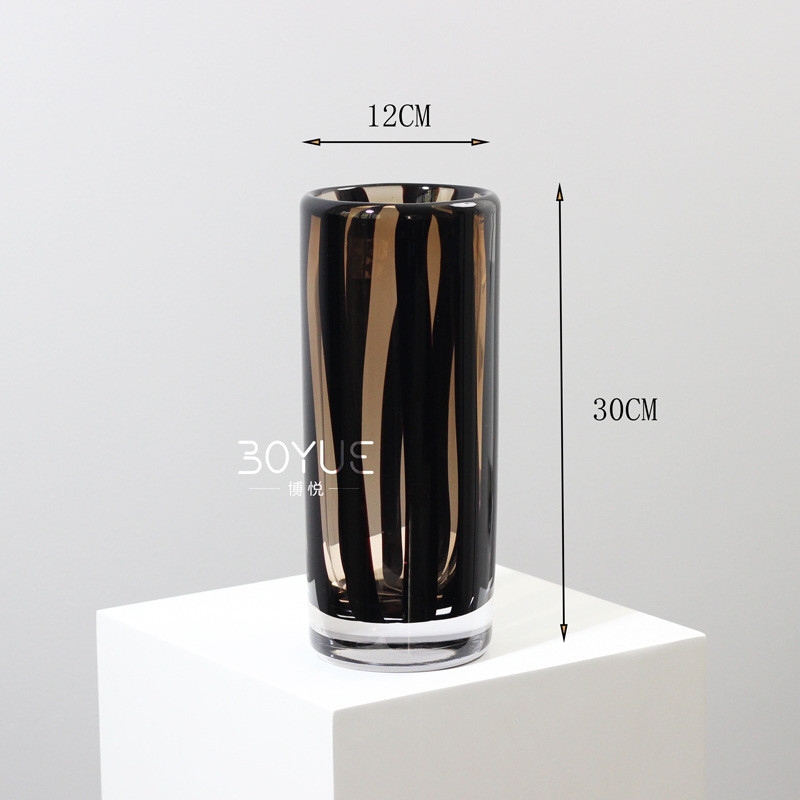黑色风现代简约棕色条纹琉璃直筒花瓶样板间客厅家居软装饰品摆件