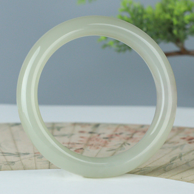 玉说和田玉手镯女款玉镯子青白淡紫春彩富贵玉镯内径约55mm附证书