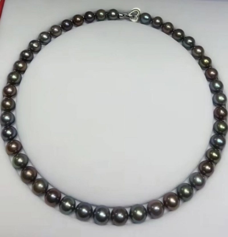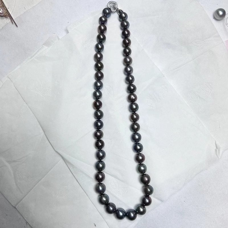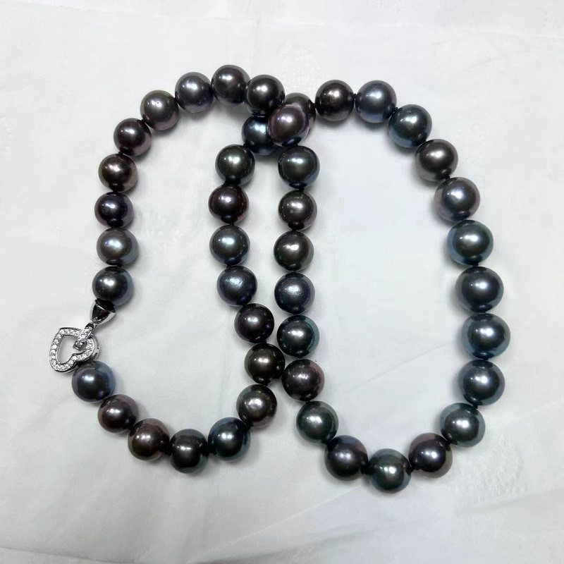 促销天然淡水珍珠项链 8-9mm和9-10mm黑色近正圆锁骨链正品送妈妈