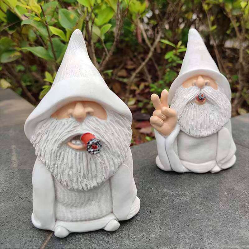 跨境圣诞节抽烟白色白胡子老人抽烟剪刀手树脂装饰品摆件竖中指