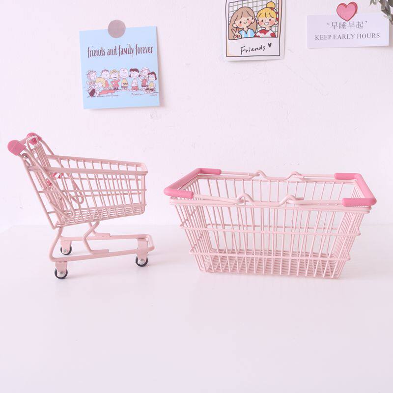 韩ins风粉色小推车迷你购物车 可爱创意少女心拍照道具手推车摆件