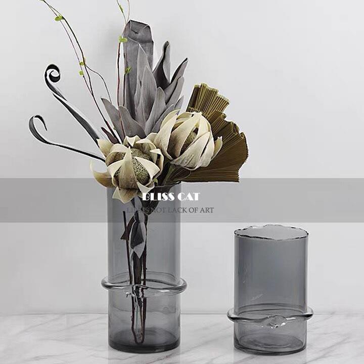代简设计师花器摆约件瓶不1规则直筒琉璃花客厅餐桌轻奢透现明插