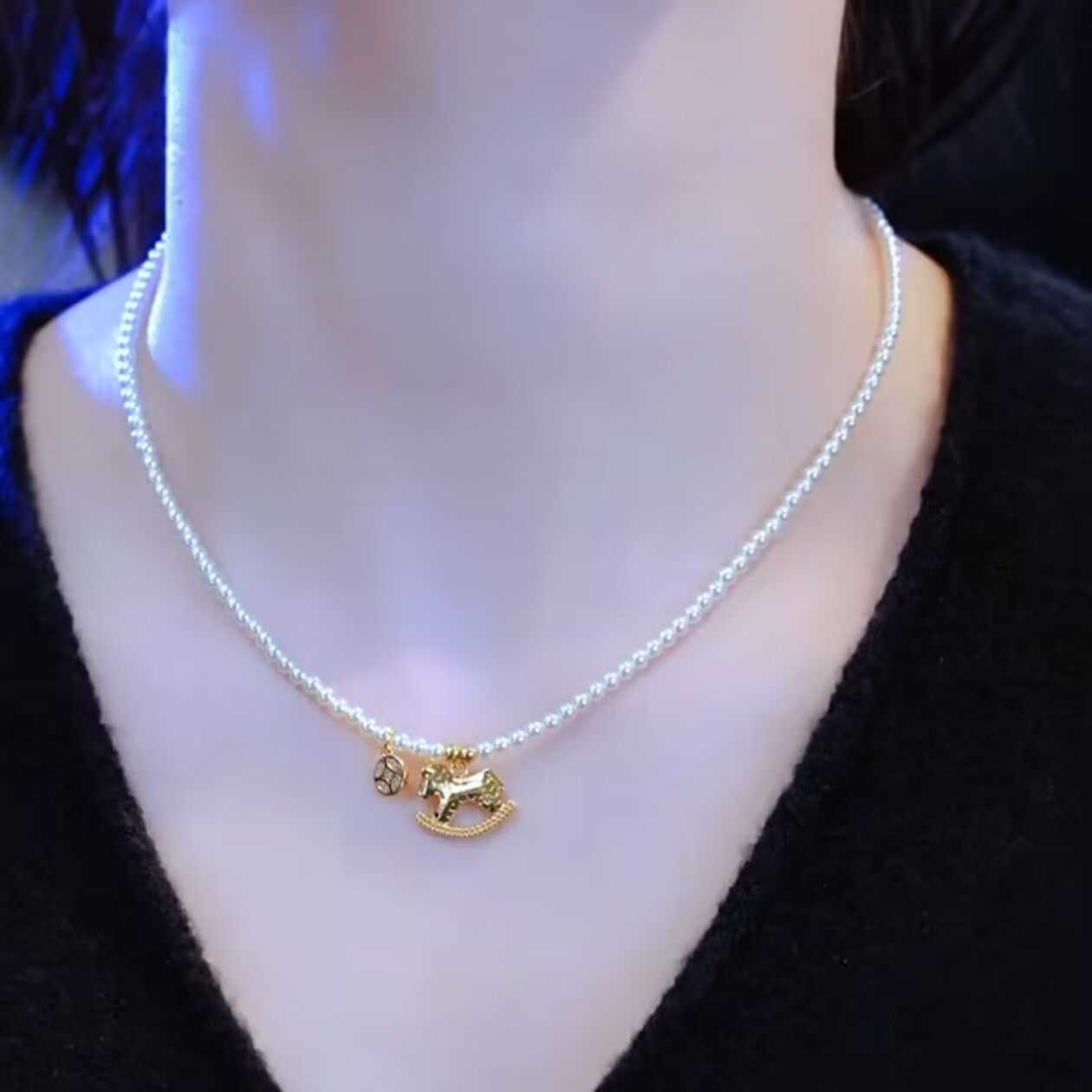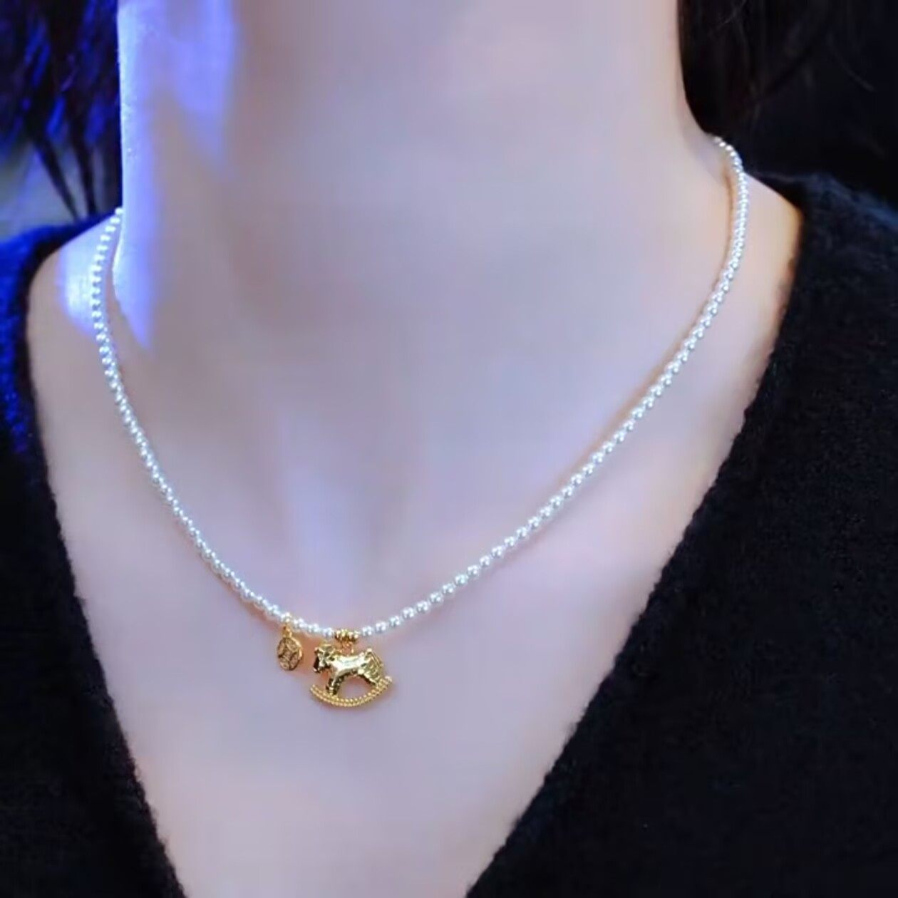 高级感金色小马珍珠项链女高级感轻奢小众秋冬脖子配饰品项链女
