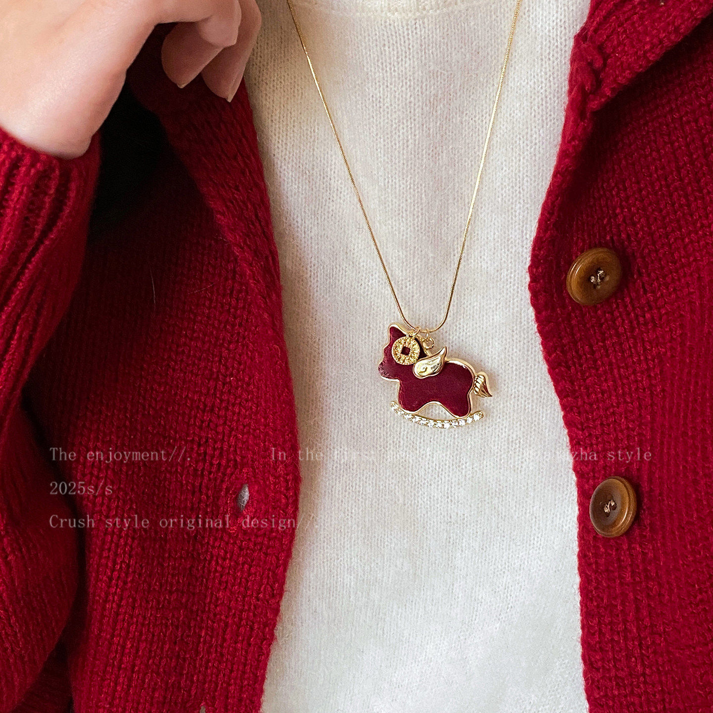 红色丝绒小马吊坠项链女2026新款本命年轻奢高级感毛衣链马年配饰