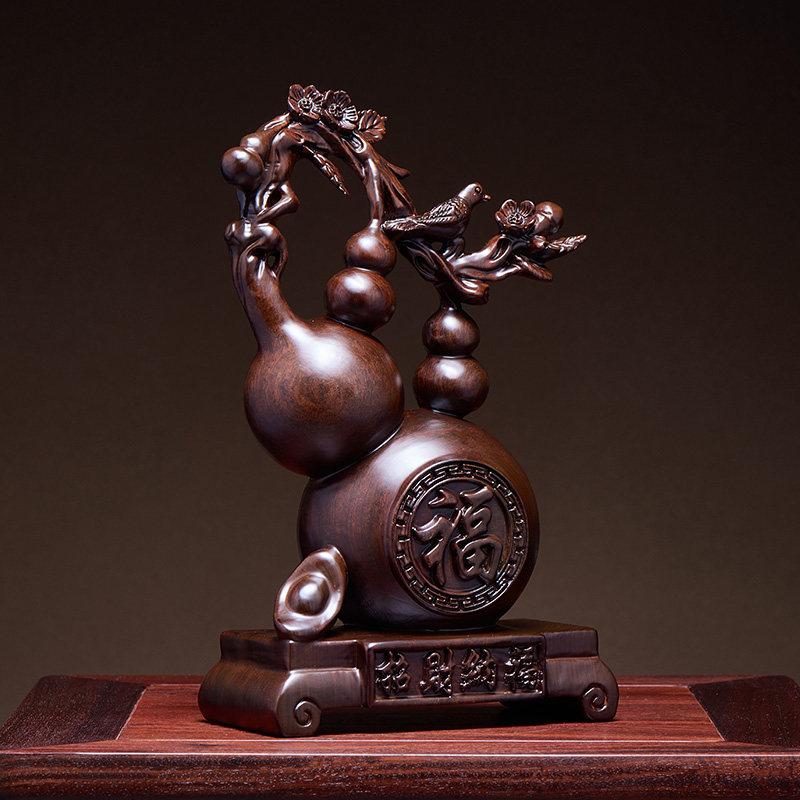 黑檀木雕五福临门葫芦摆件实木喜鹊登梅招财风水家居装饰乔迁送礼