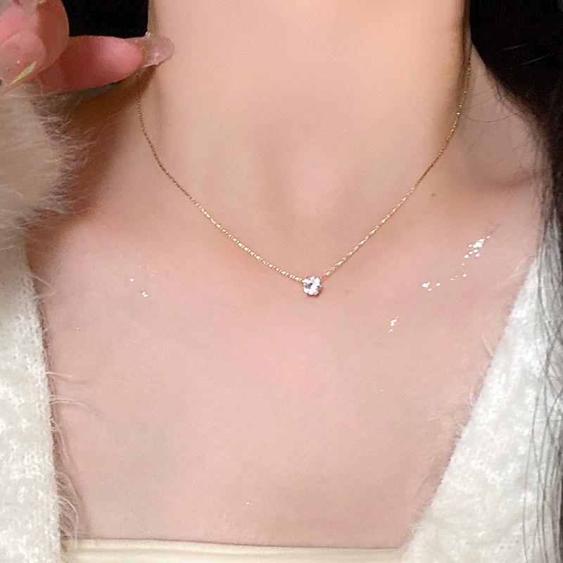 简约素雅锆石吊坠项链轻奢小众蛇骨链钛钢项链女款锁骨链颈链饰品
