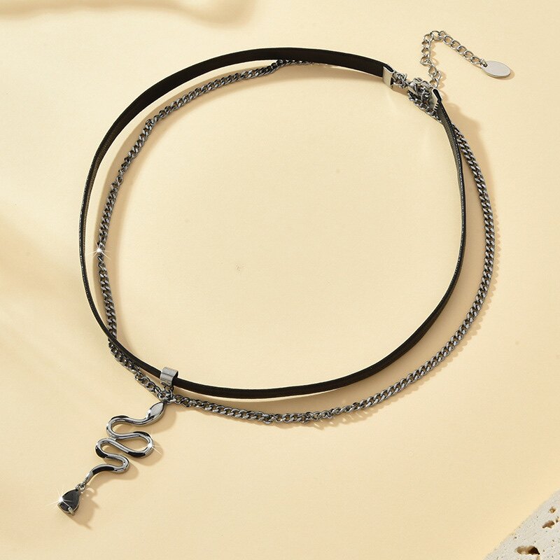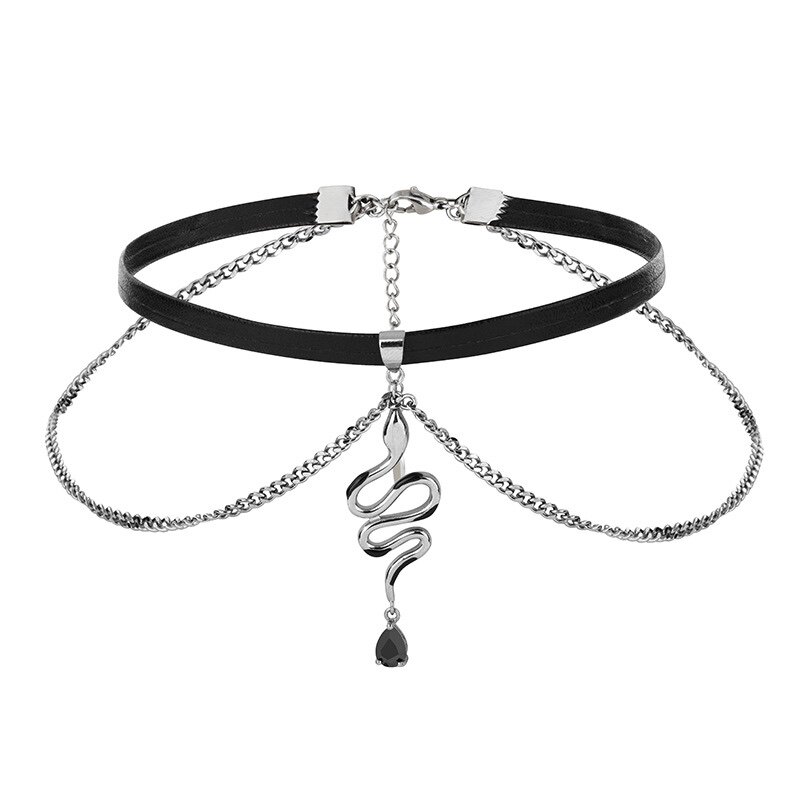 黑色颈链脖子饰品气质锁骨链蛇形配饰女小众项链choker暗黑系项圈