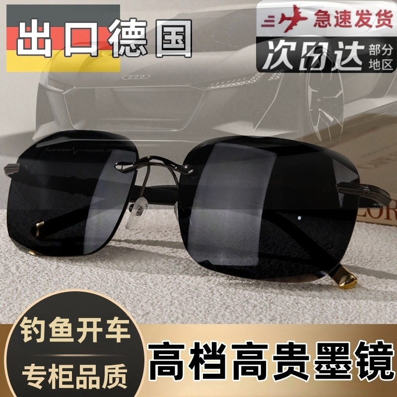 男士遮阳太阳镜防紫外线墨镜高清开车钓鱼镜复古眼镜无框大框防晒