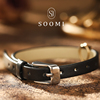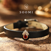 【SOOMI贵族风尚】925银复古高级感牛皮带黑色珐琅鸽血红宝石手链