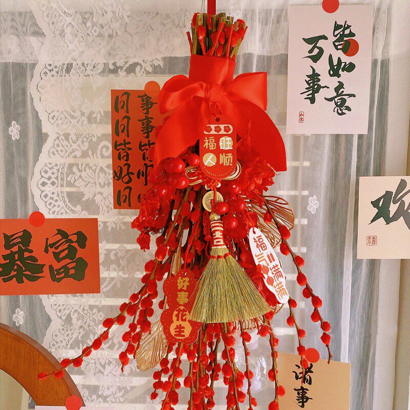 2026年新春节新年门挂花艺家居装饰挂饰红色编织福字挂饰春节装饰