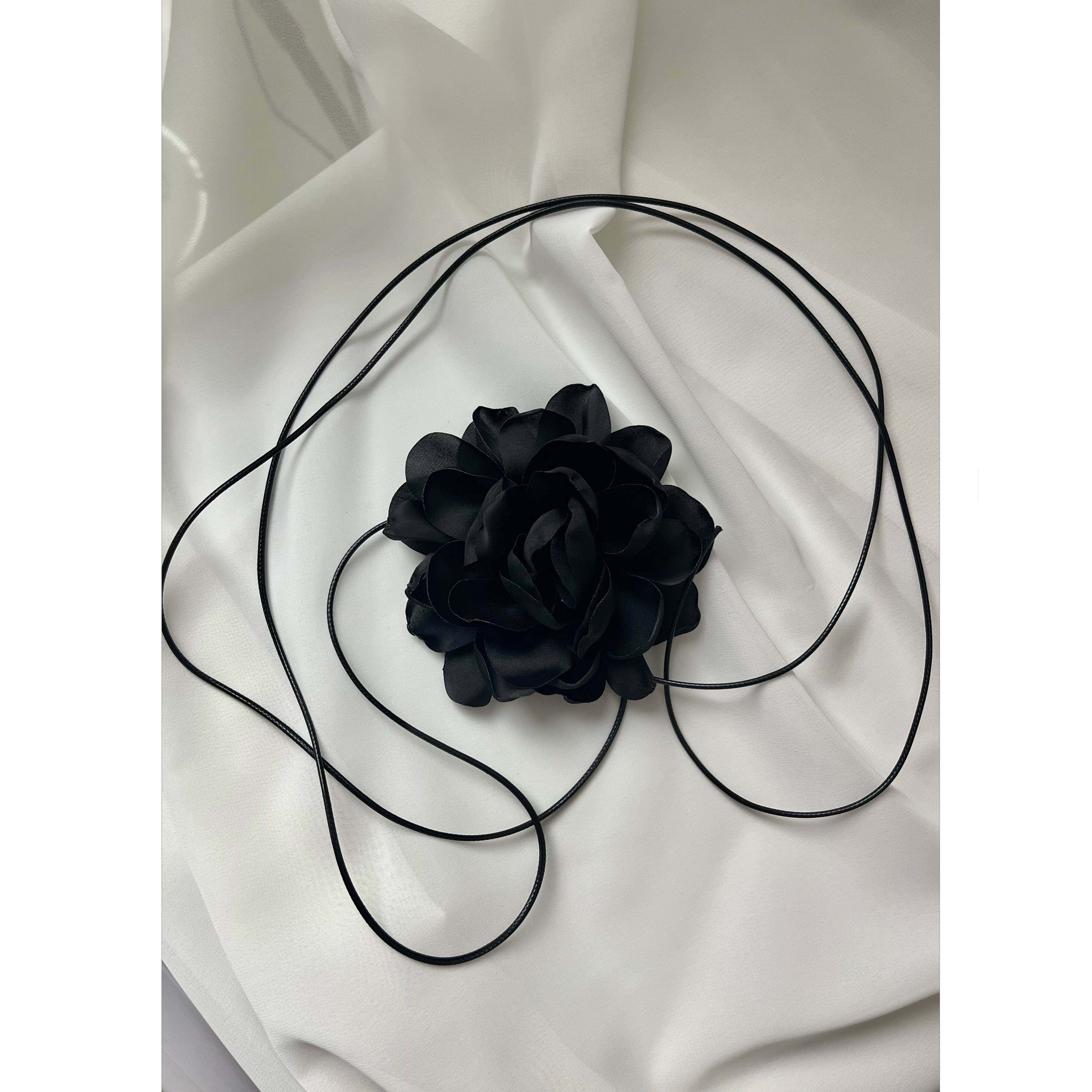 BETTER ME 脖颈立体黑色花朵飘带西装项链饰品