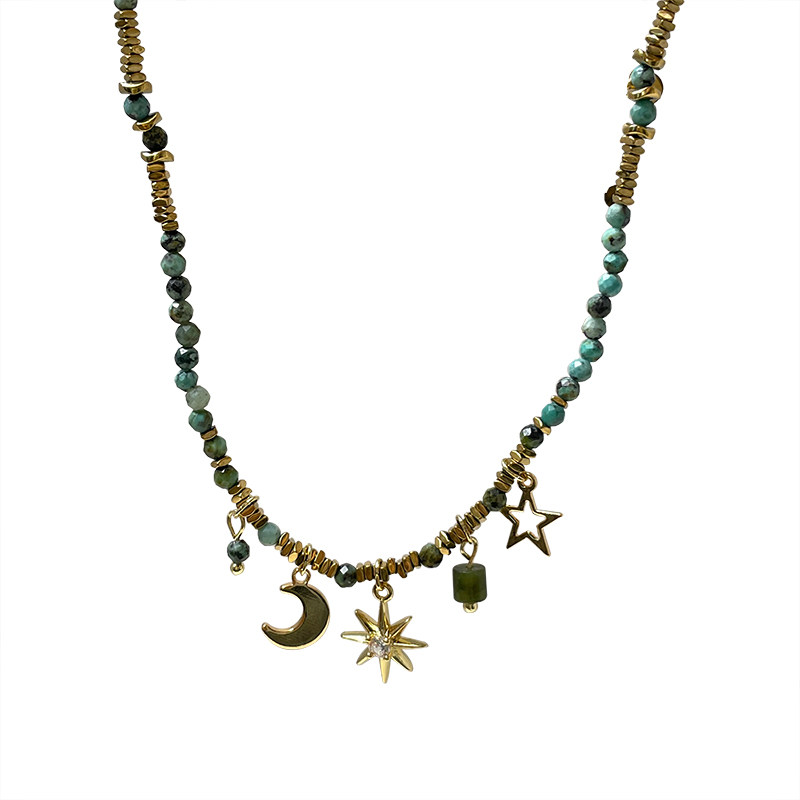 波西米亚太阳花天然石叠戴串珠项链女中古vintage小众毛衣链配饰