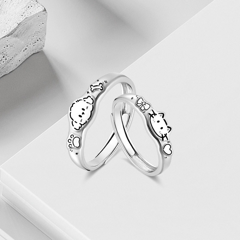 时尚萌趣宠物系列情侣戒指森系清新创意学生对戒饰品创意男款女款